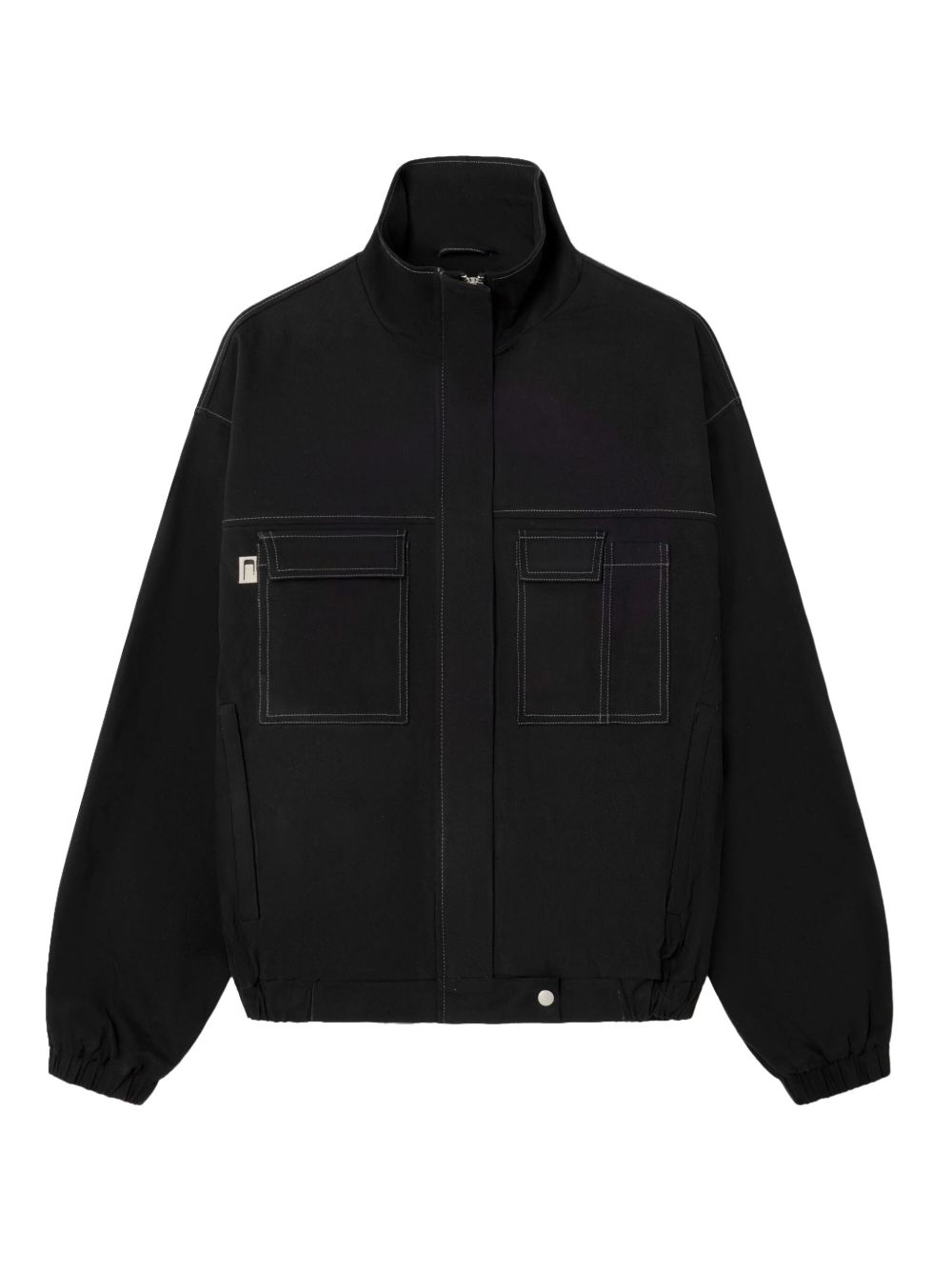 Black Barrau jacket by Carrer in cotton with concealed front zip closure, two patch pockets on the chest, and two side pockets with zips.