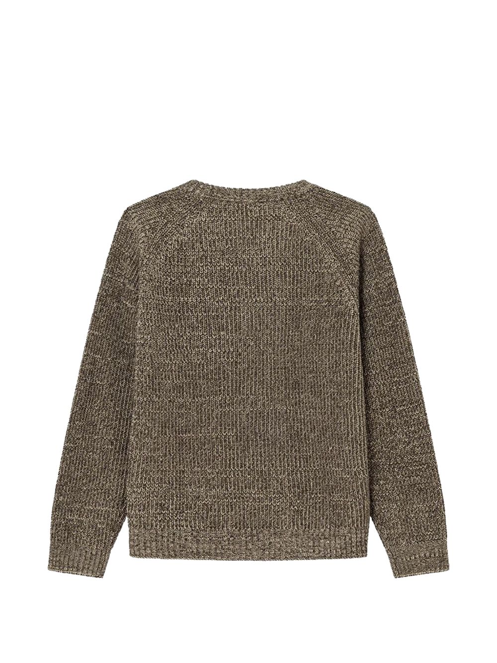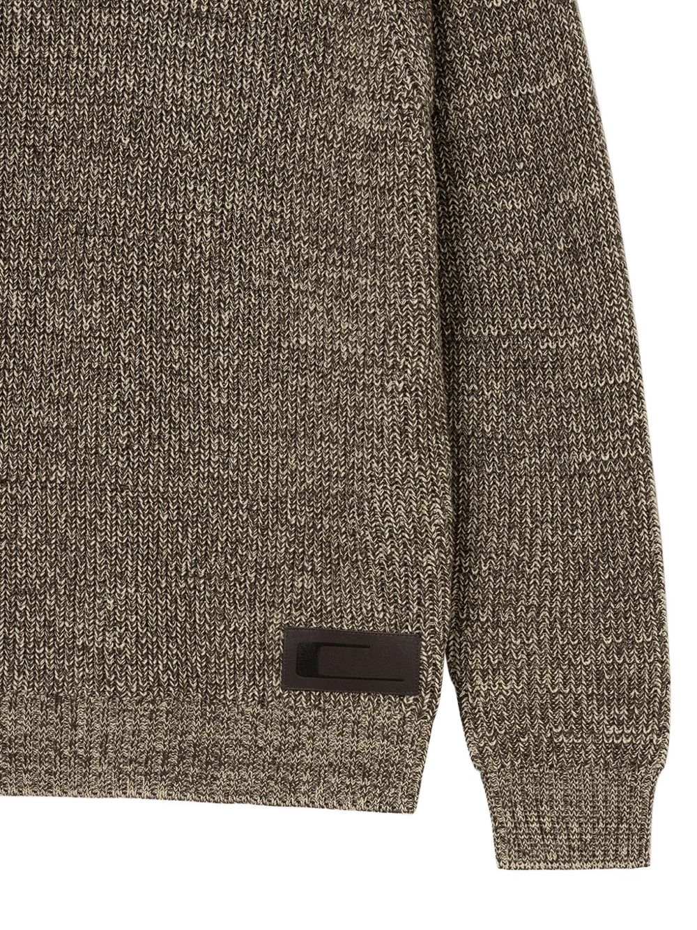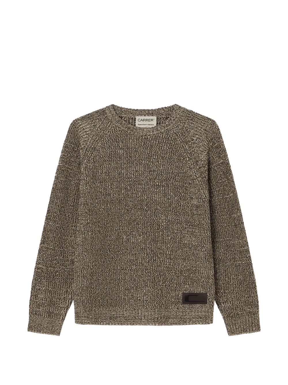 Brown melange Bros di Carrer cotton sweater with crew neck, hidden dot pattern, long sleeves, and leather patch.
