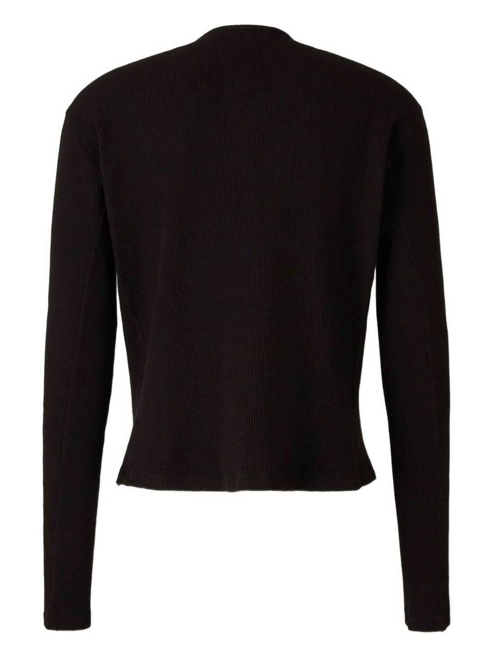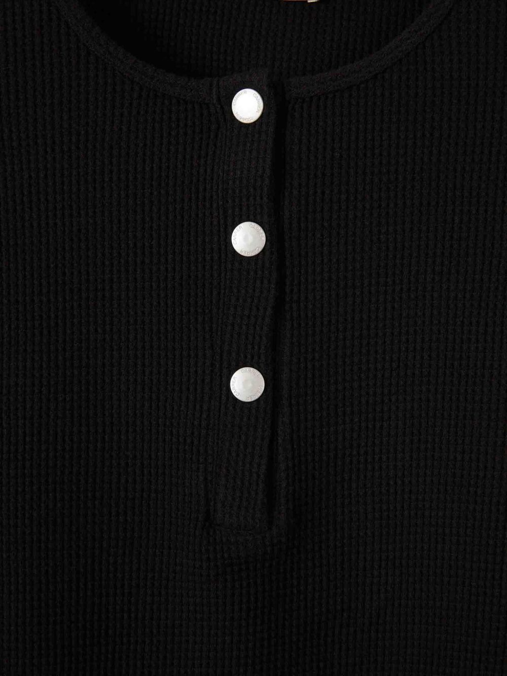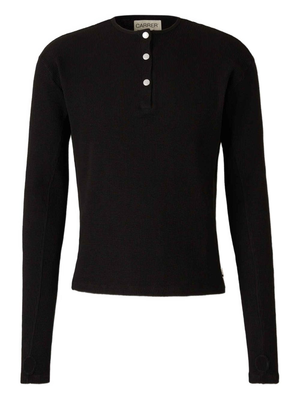 Black Lis Henley T-shirt by Carrer in cotton with a crew neck, three-button front opening, honeycomb weave, long sleeves, and a straight hem.