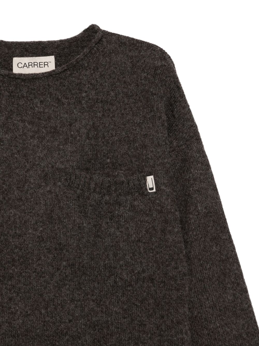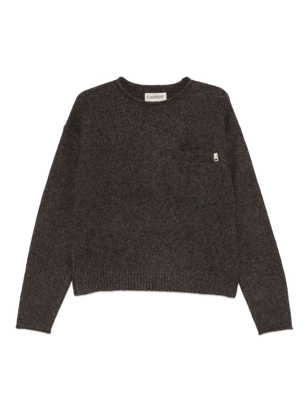 Roman gray sweater by Carrer in polyester with a crew neck, long sleeves, and a straight hem.