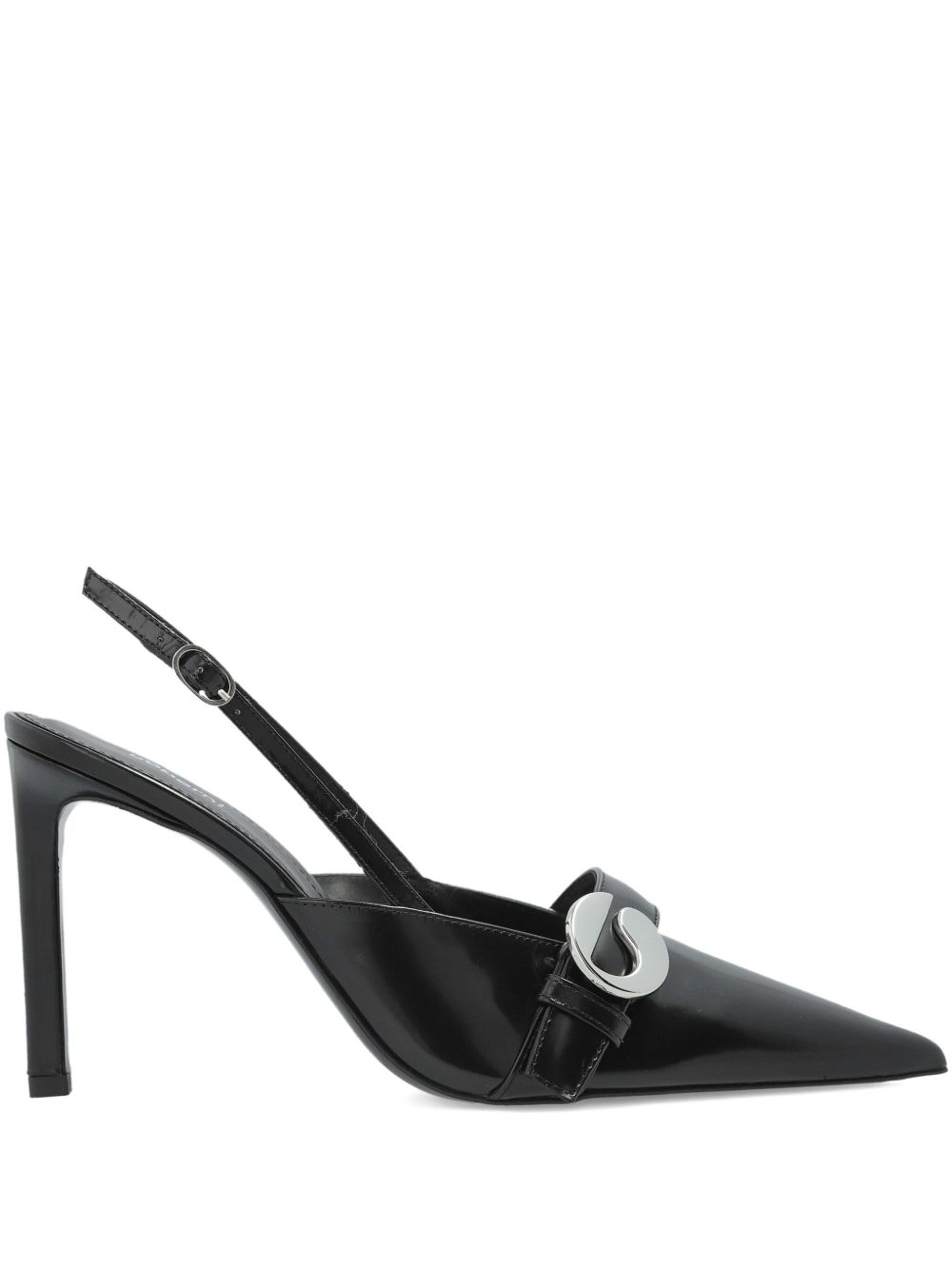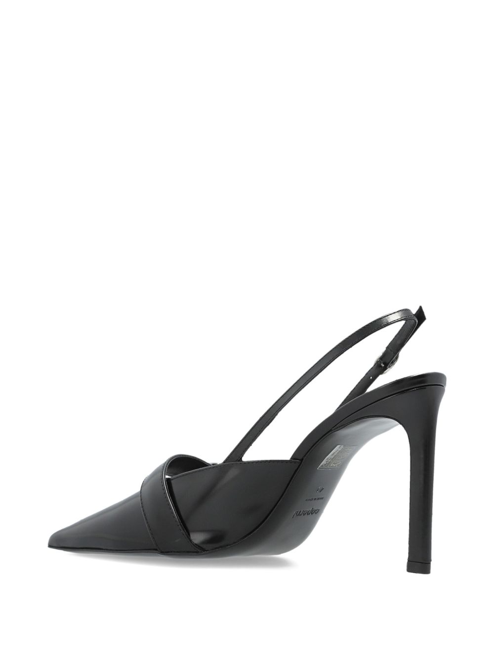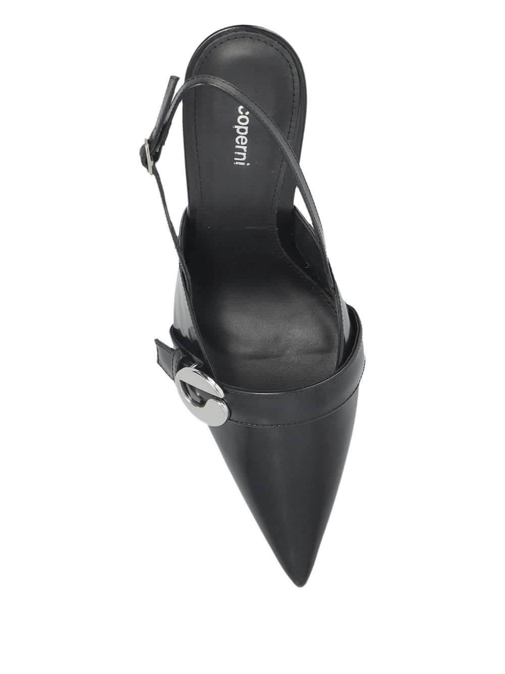 Coperni Belt Hell black leather pumps with tapered toe, buckle closure, and stiletto heel.