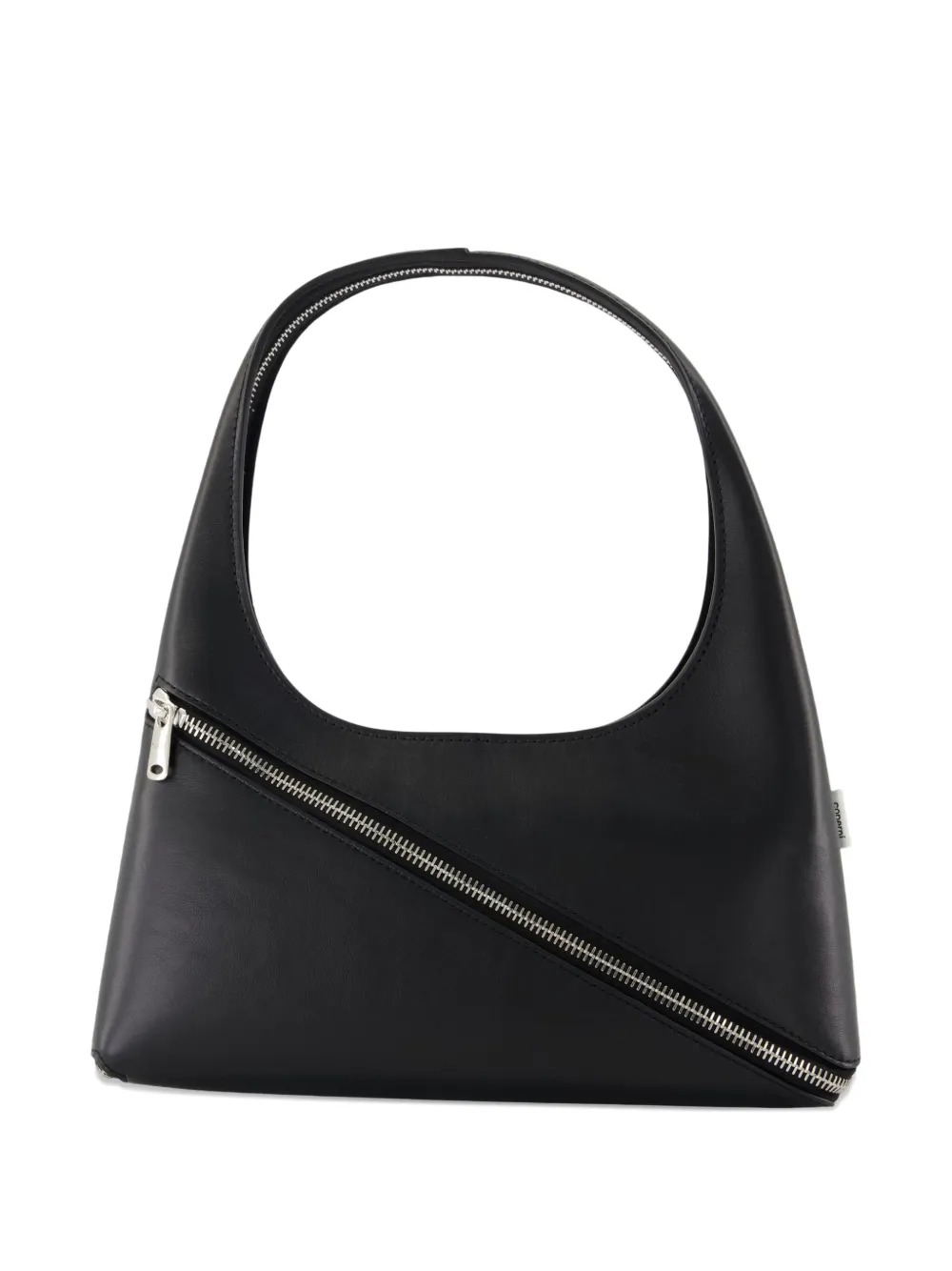Coperni Zip Baguette black leather bag with handle, double-slider zip closure, zip detail, and contrasting logo.