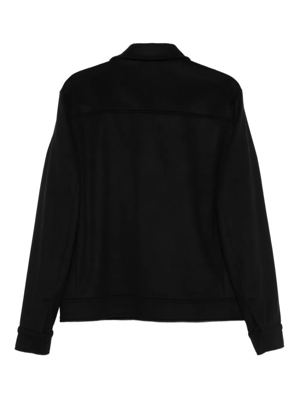 Black Dani Piave jacket by Costumein in lyocell with front button closure, classic collar, long sleeves, and straight hem.