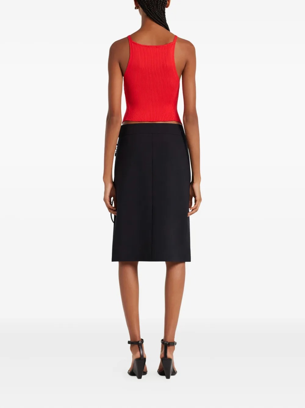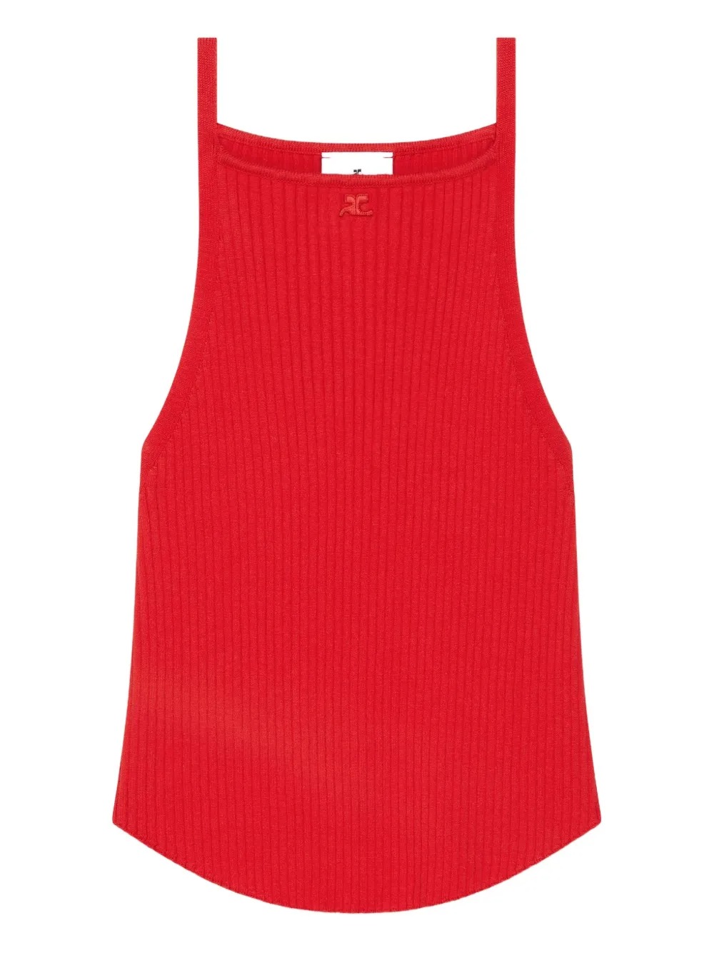 Red Circle Rib Knit top by Courrèges in viscose with sleeveless design, rounded hem, and ribbed texture.