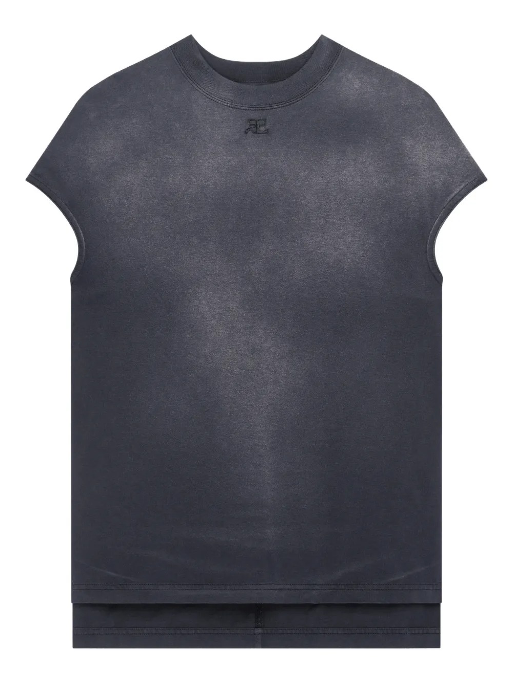 Oversized black cotton T-shirt by Courrèges with logo detail, crew neck, short sleeves, and cotton.