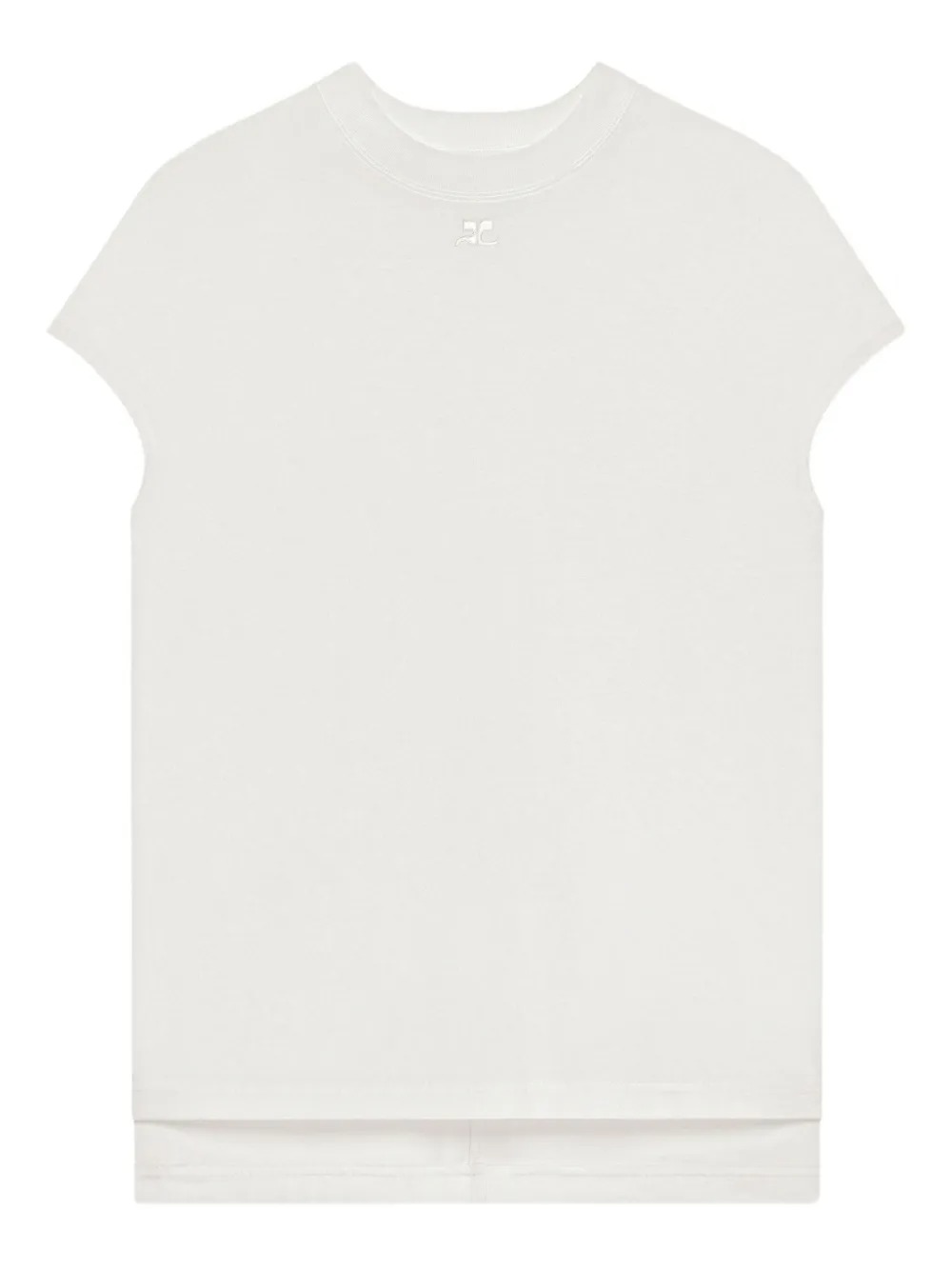 Oversized white cotton T-shirt by Courrèges with logo detail, crew neck, short sleeves, and cotton.
