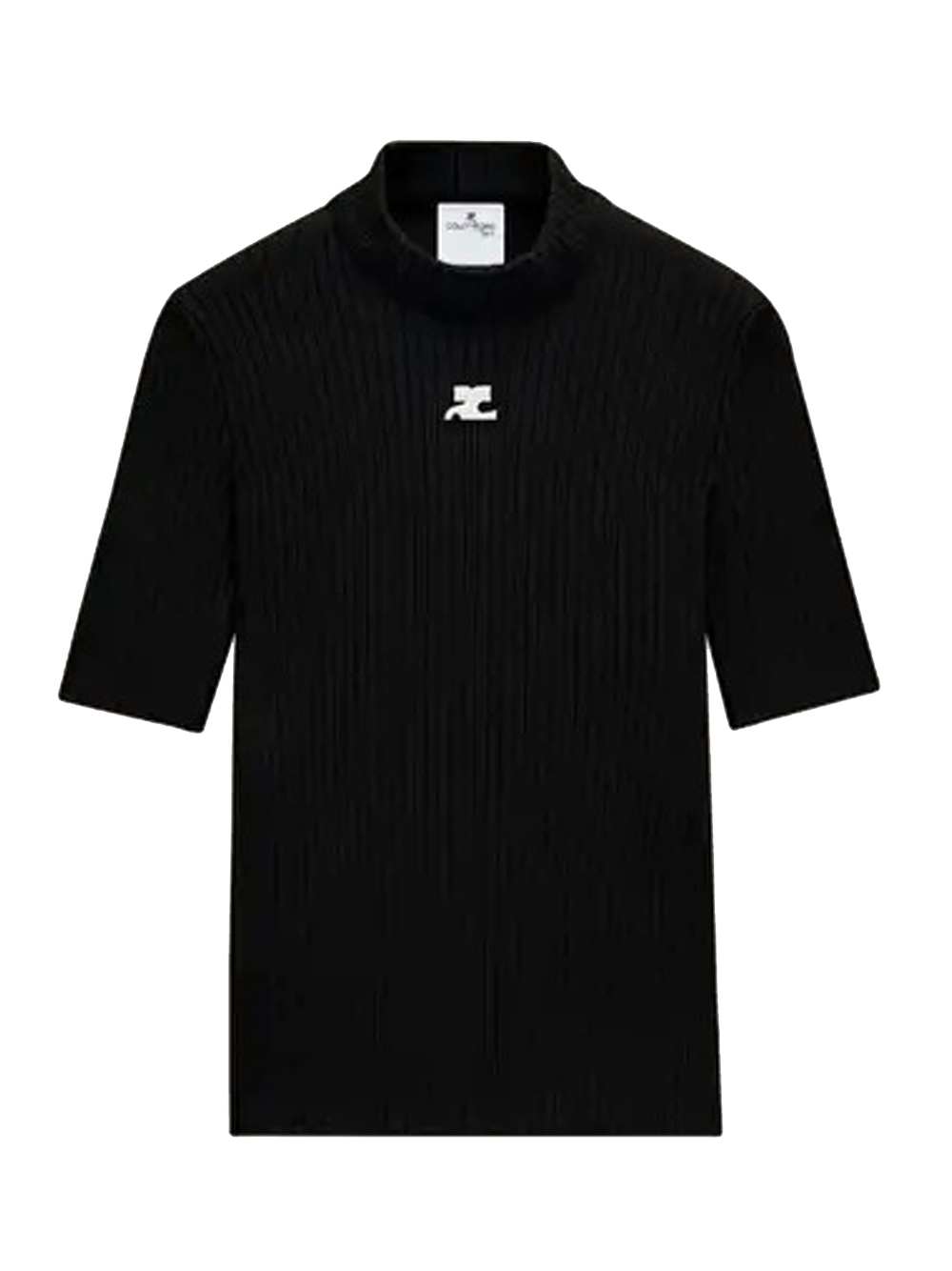 Courrèges Reedition Short Sleeves black viscose sweater with ribbed knit detailing