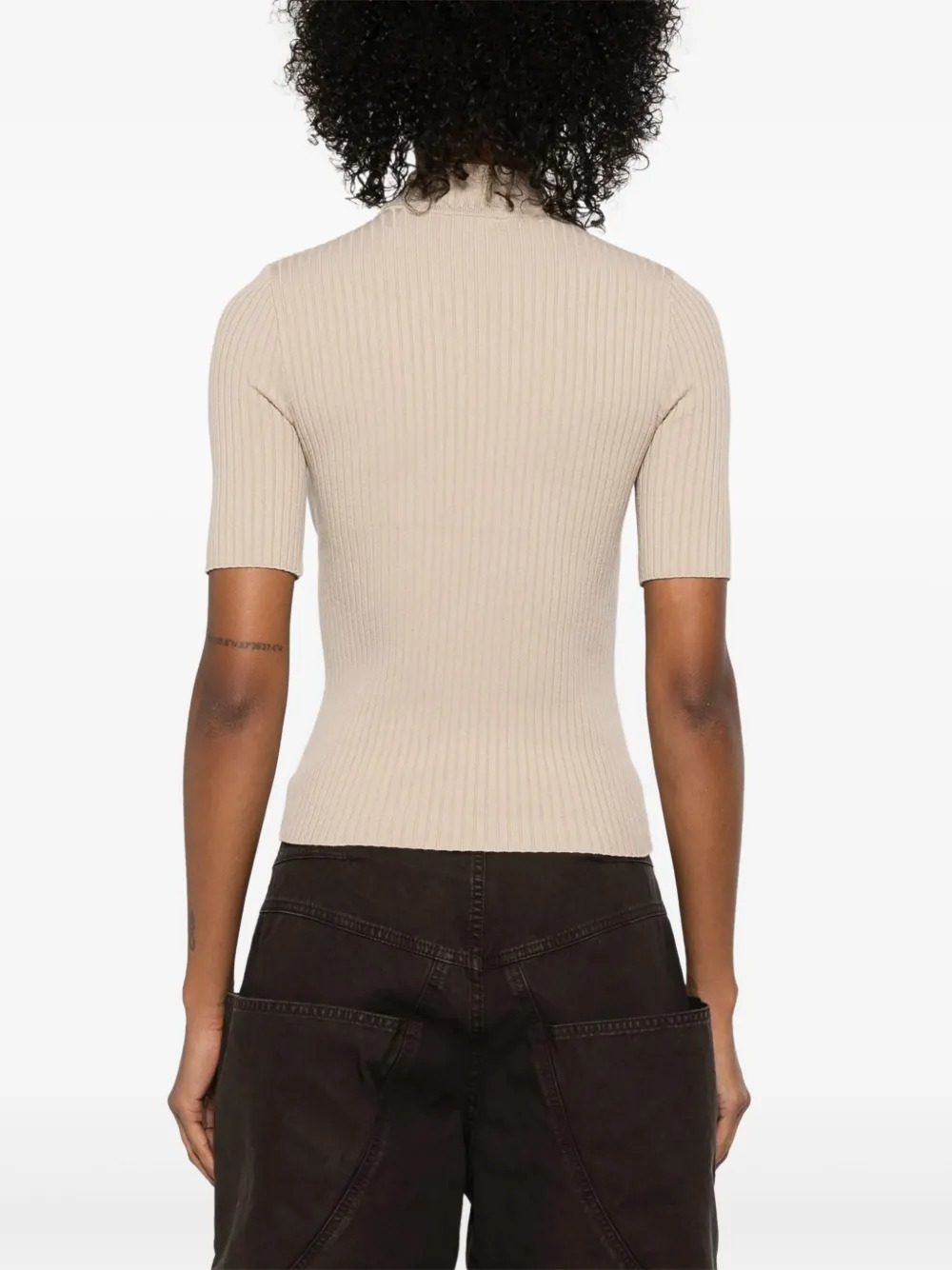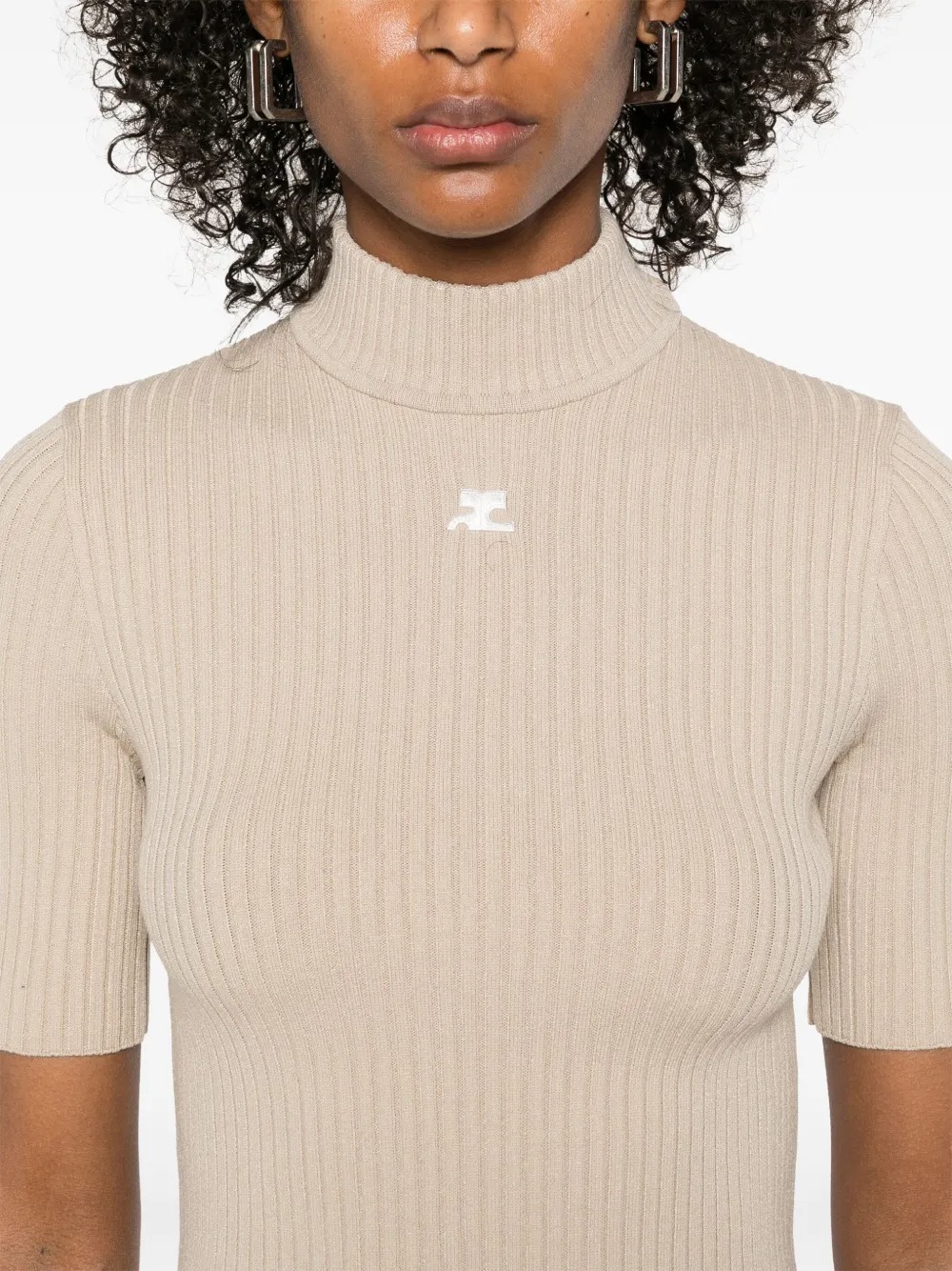 Courrèges Reedition Short Sleeves cappuccino viscose sweater with ribbed knit detailing