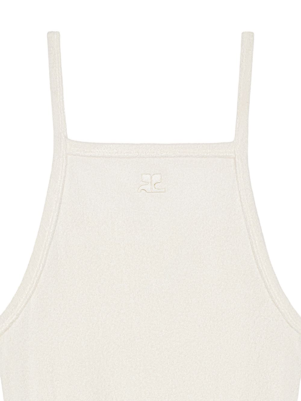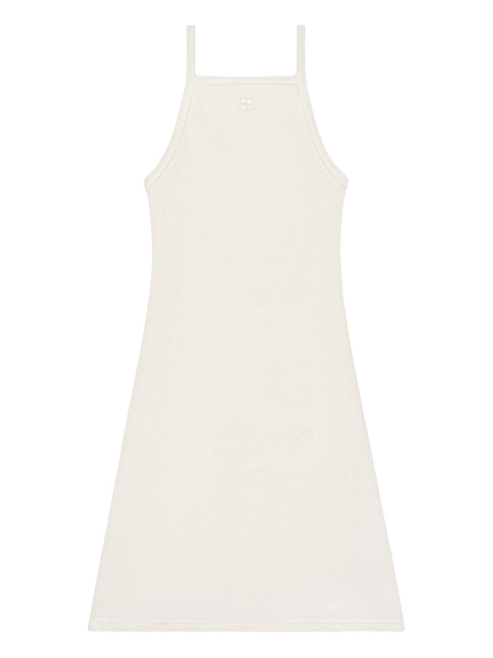 Light beige Spongy Heritage dress by Courrèges, made of viscose with an embroidered logo, sleeveless, with a square neckline and thin straps.