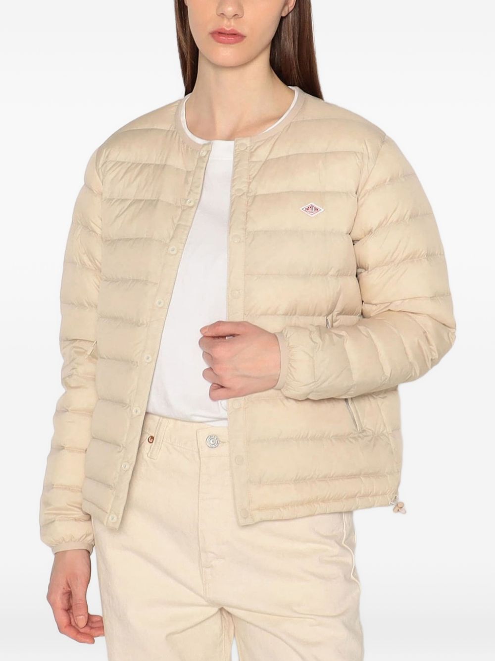 Nylon Crewneck Inner Down jacket by Danton with round neckline with front snap button closure and side pockets.