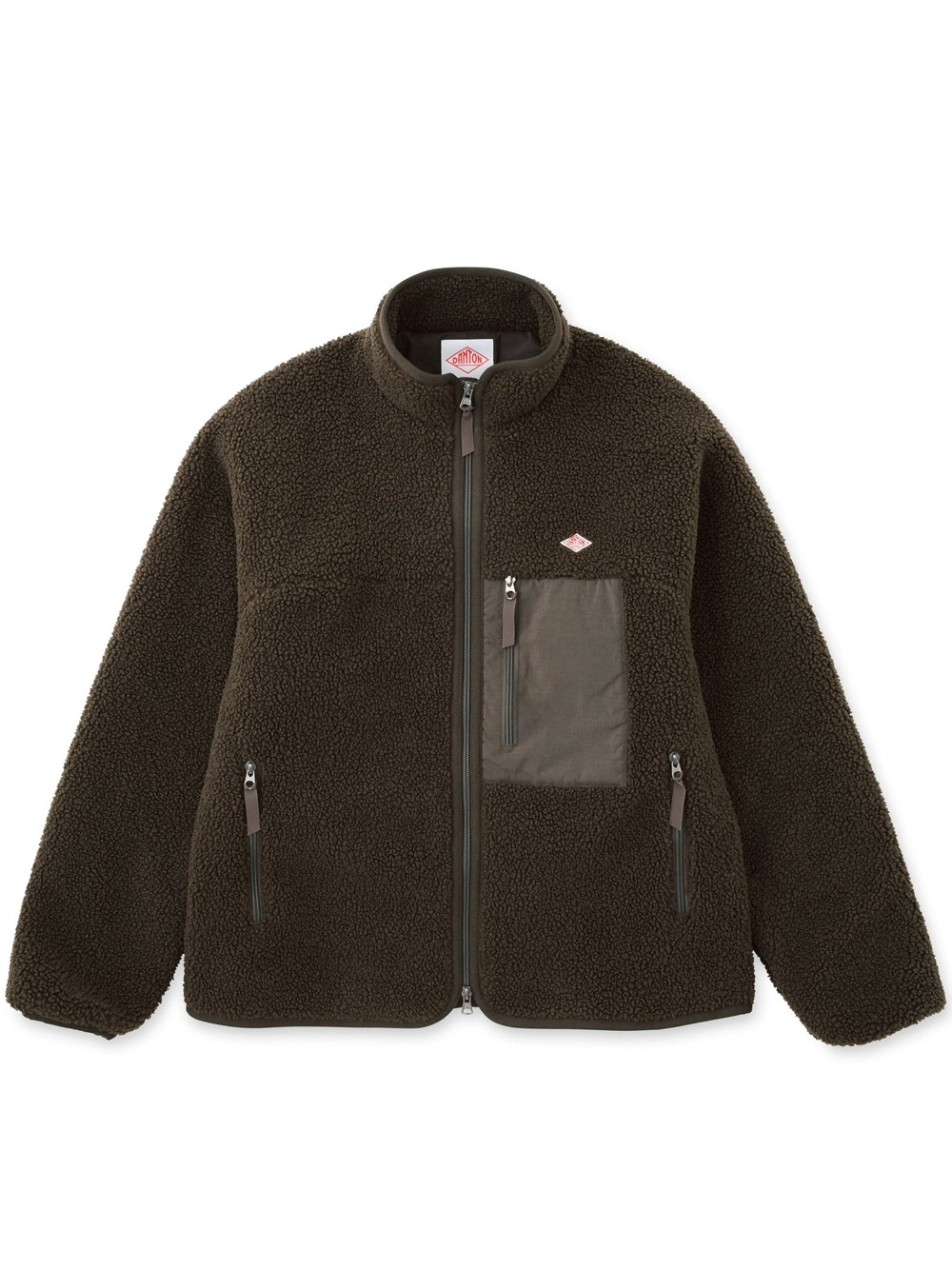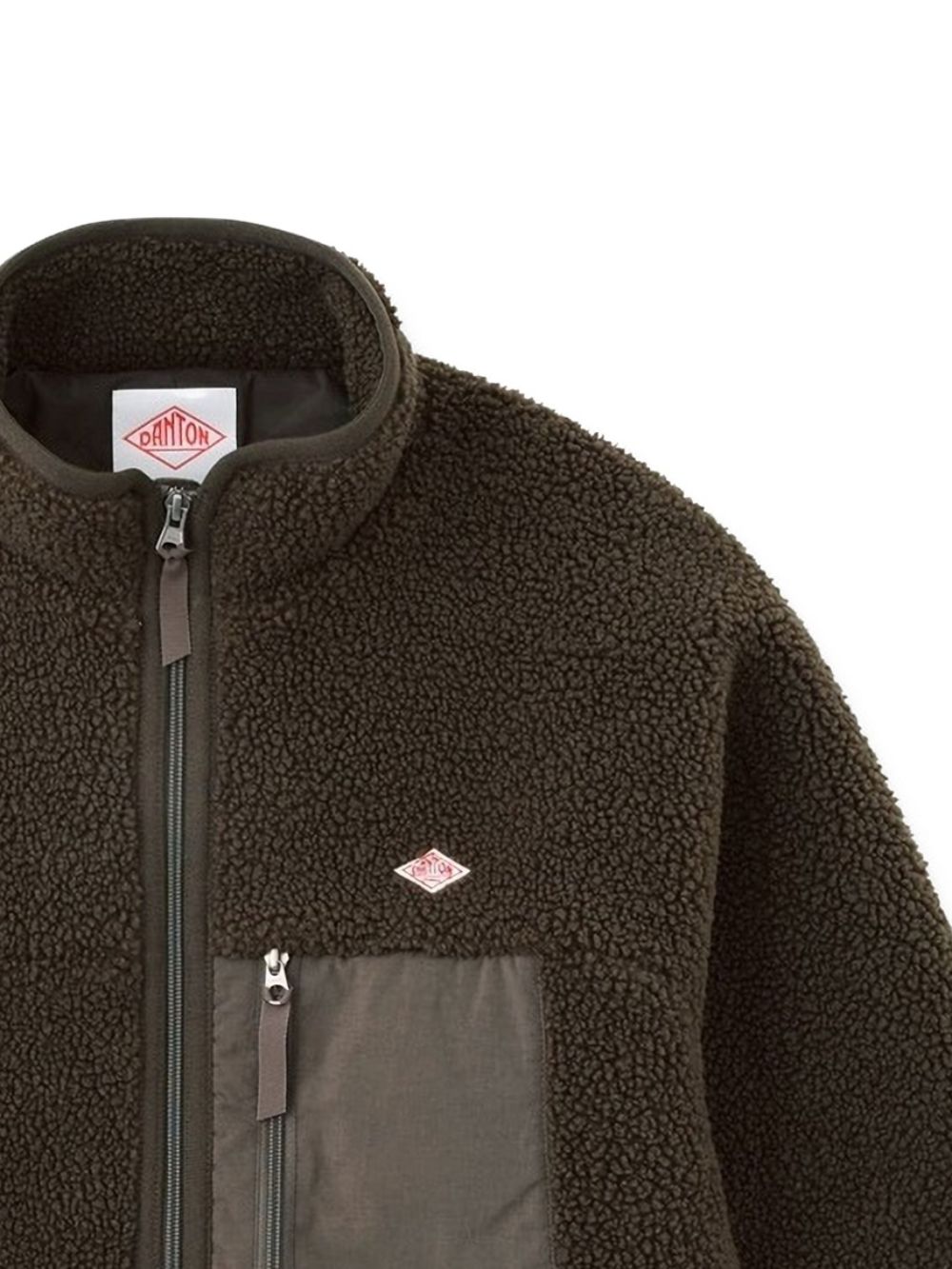 Danton Insulation Light Boa Stand Collar jacket in polyester with front zip closure, front pocket, and side pockets with zips.