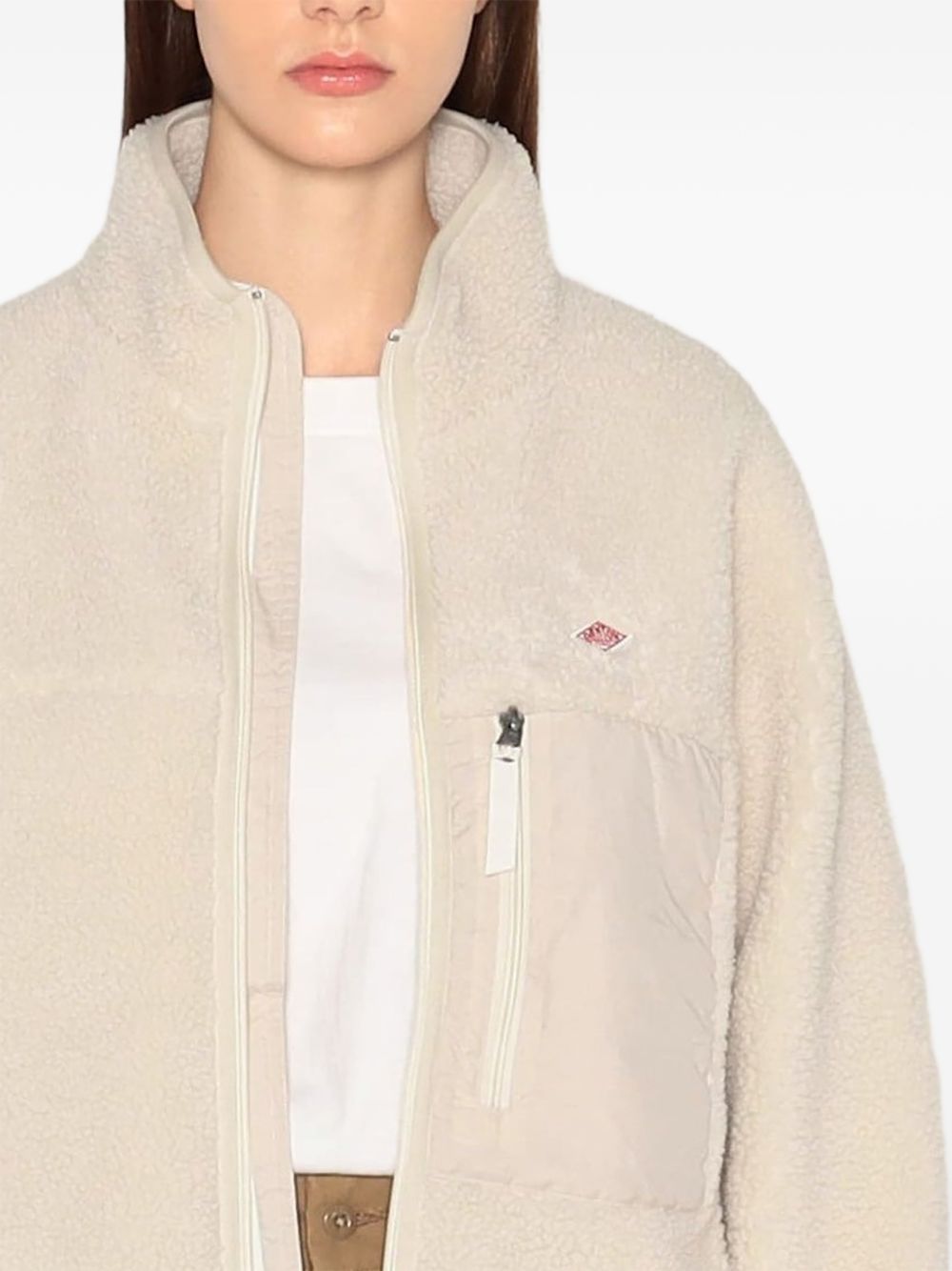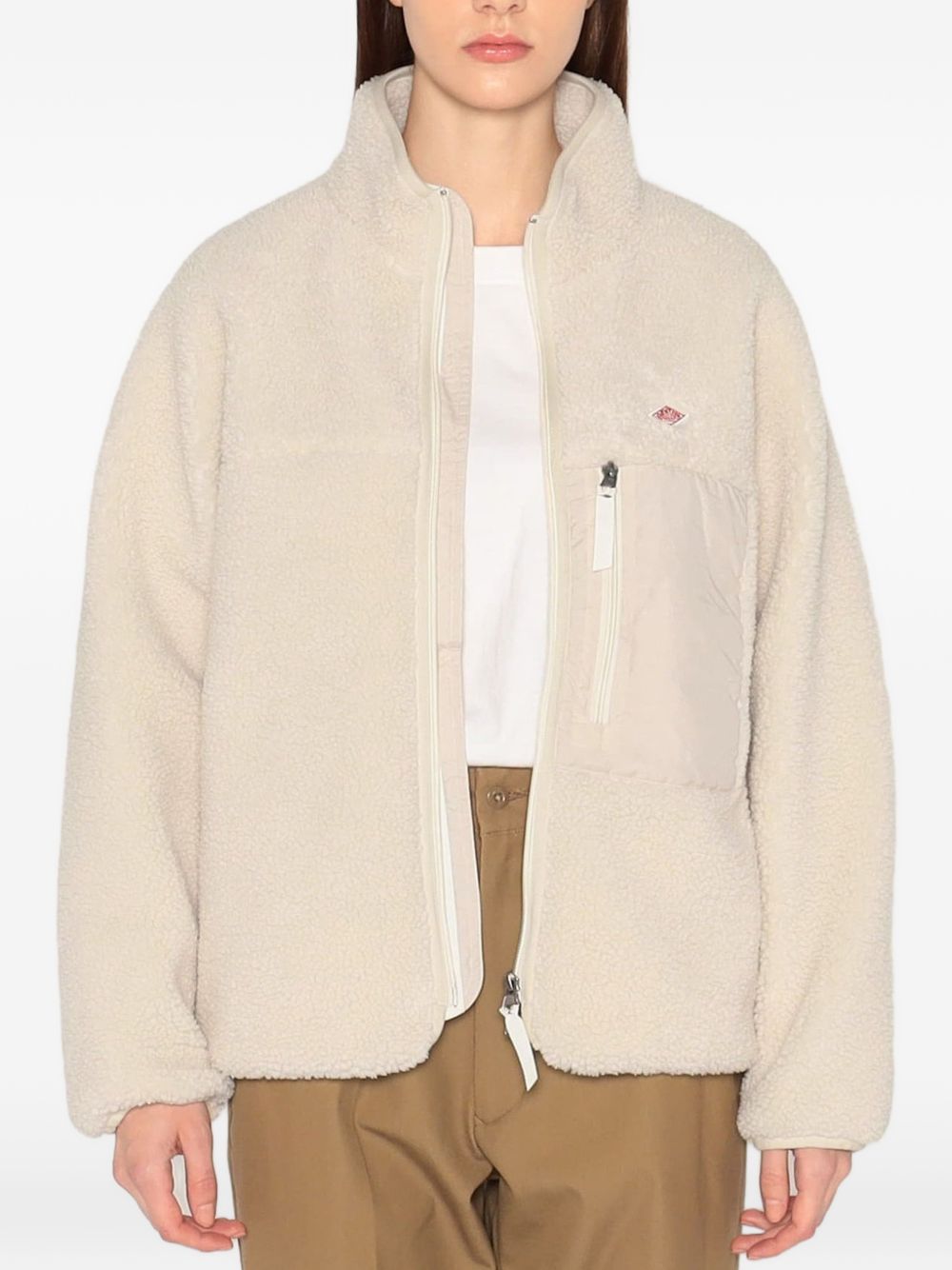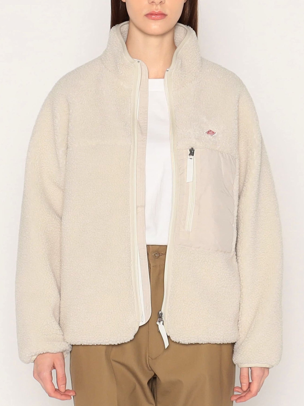 Danton Insulation Light Boa Stand Collar jacket in polyester with front zip closure, front pocket, and side pockets with zips.