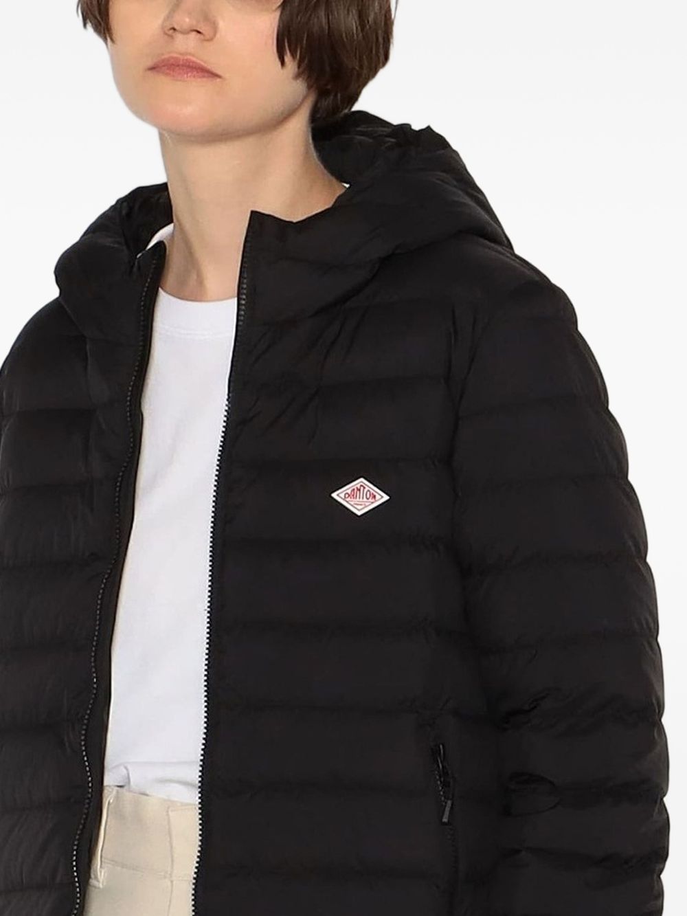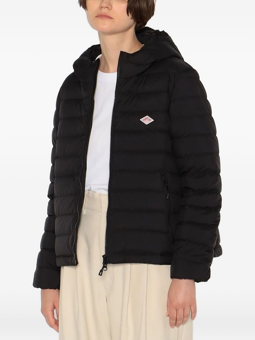 Danton Middle Hooded Nylon Taffeta Padded Jacket in nylon with hood, front zip closure, and side zip pockets.