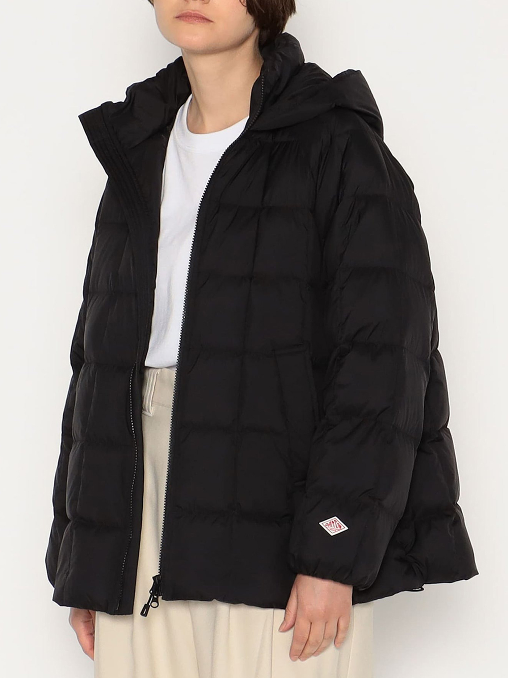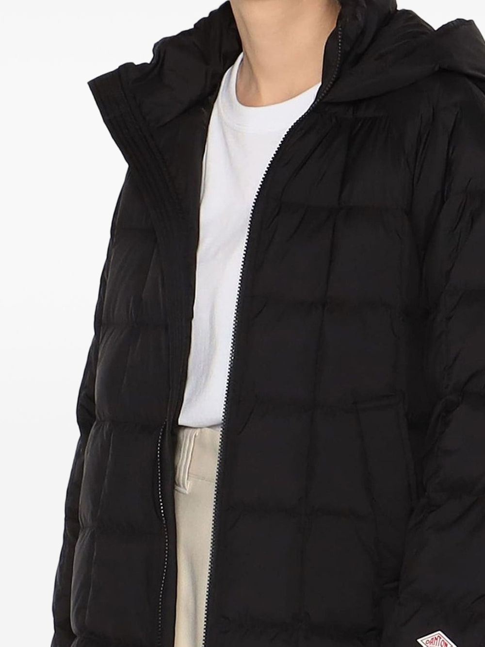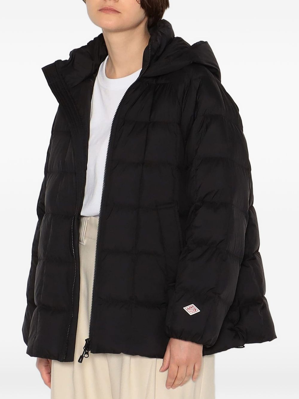 Danton Square Quilted Down Nylon Taffeta Padded Jacket in nylon with hood, front zip closure, and side zip pockets.