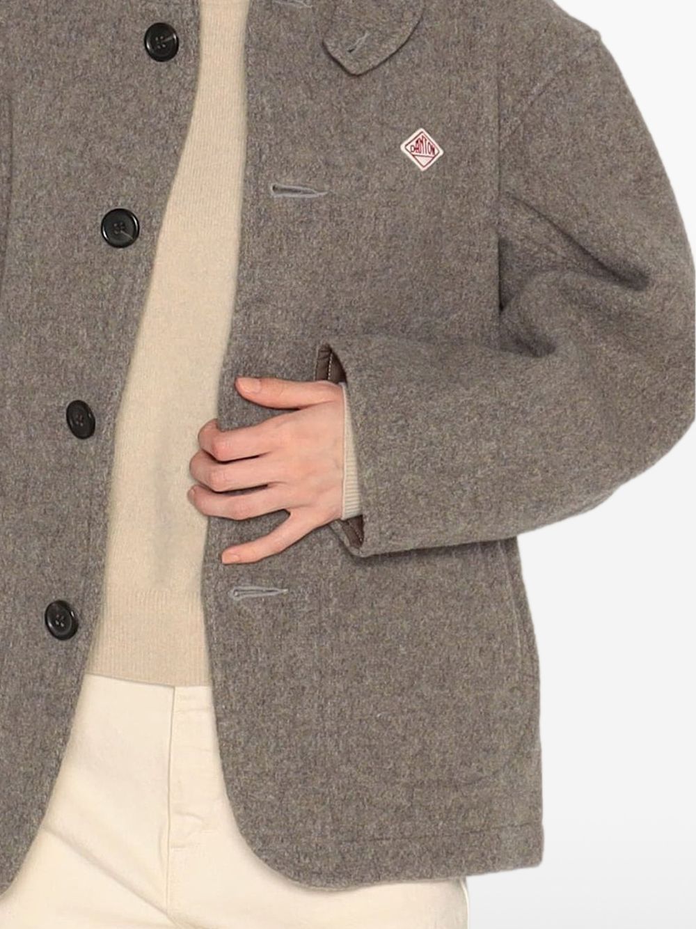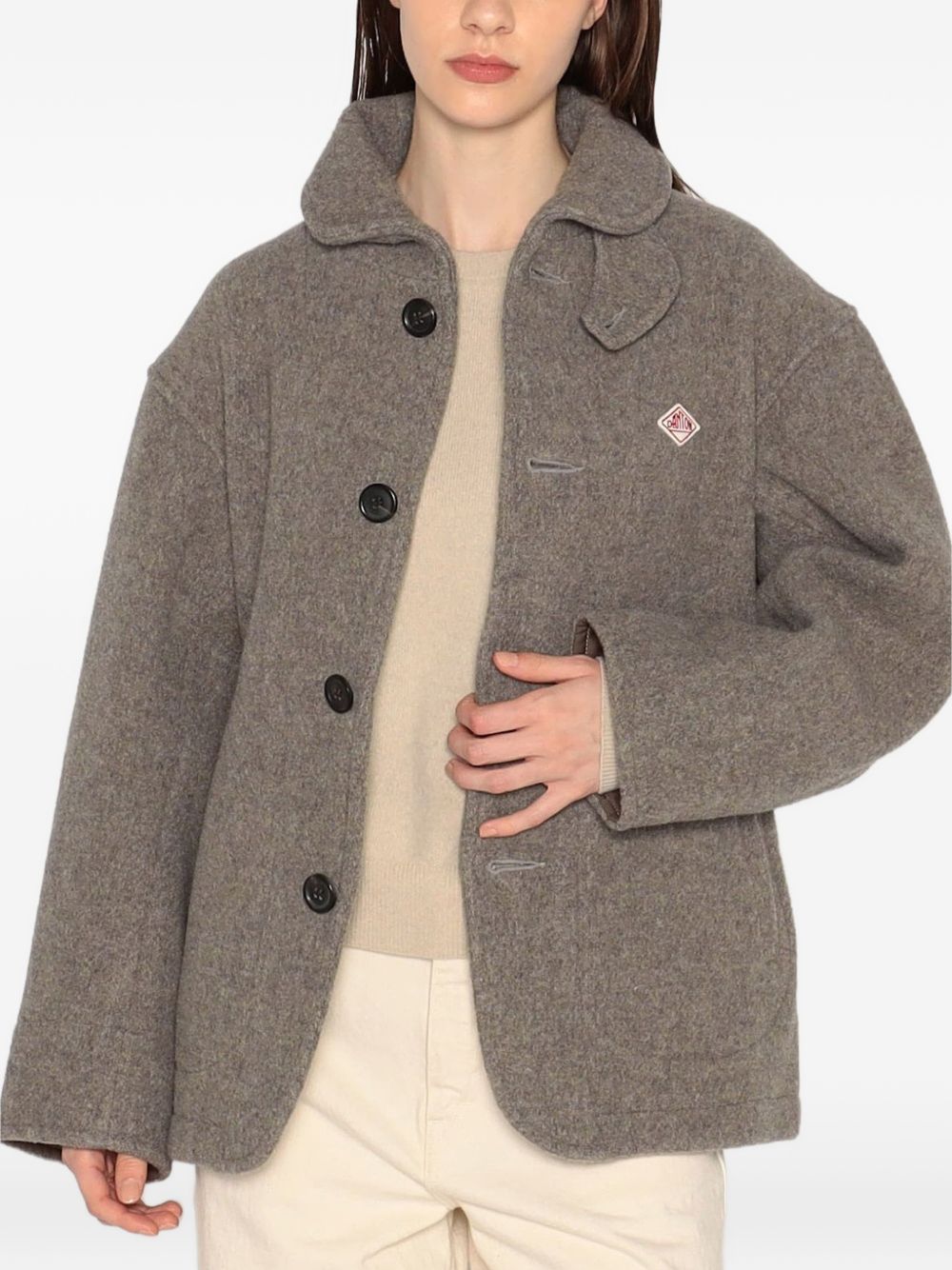 Wool Pile Round Collar Jacket by Danton in wool with round collar, front button closure, and side pockets.