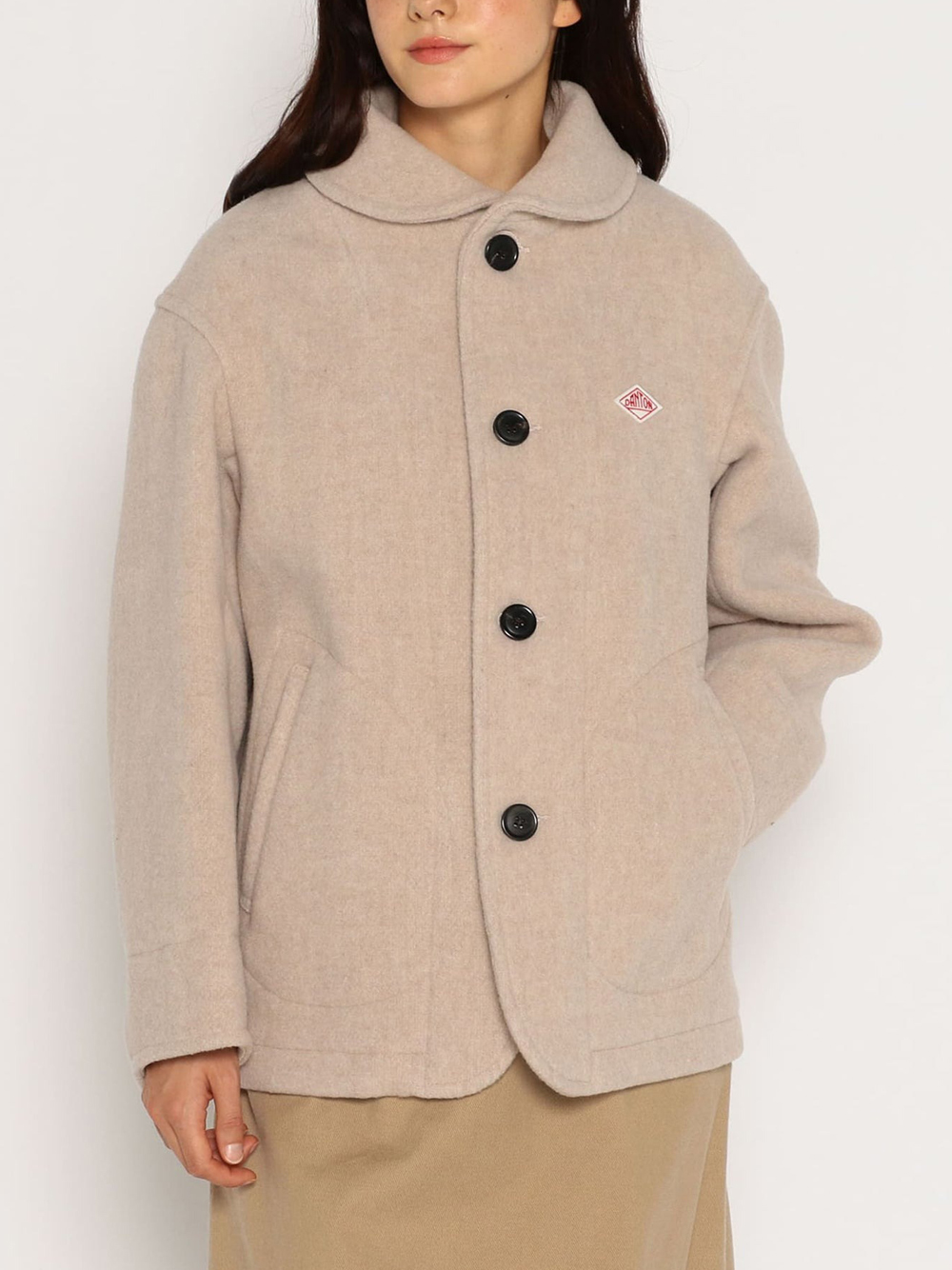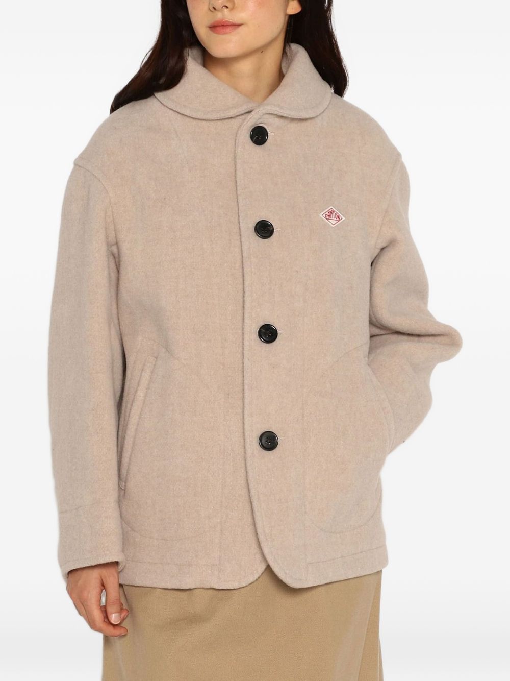 Wool Pile Round Collar Jacket by Danton in wool with round collar, front button closure, and side pockets.