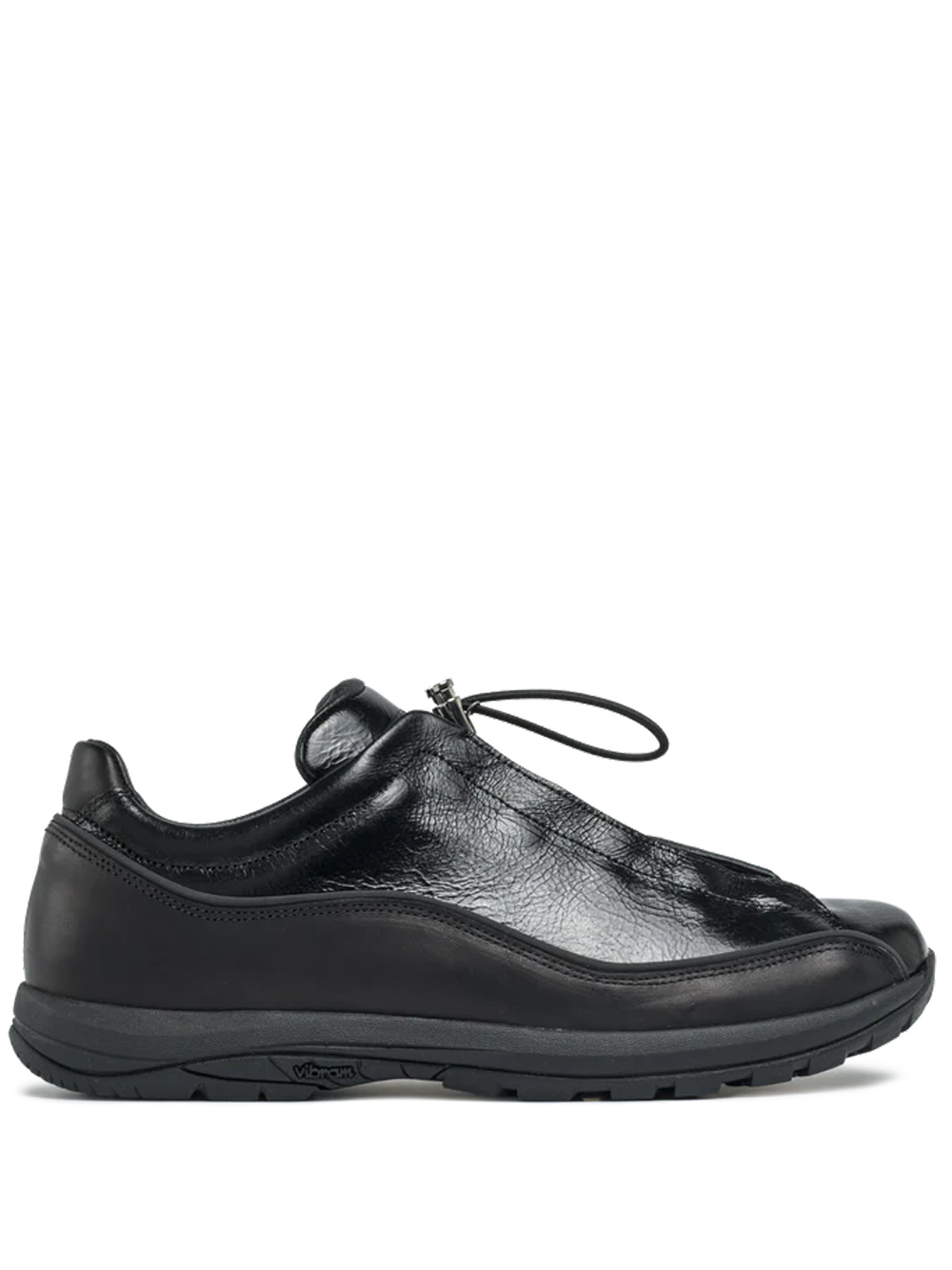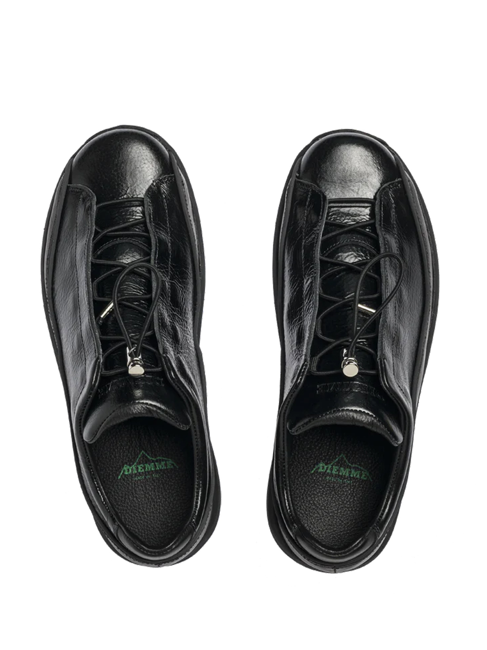 Black Licata sneakers by Diemme in leather with drawstring closure, insert design, and rubber sole.