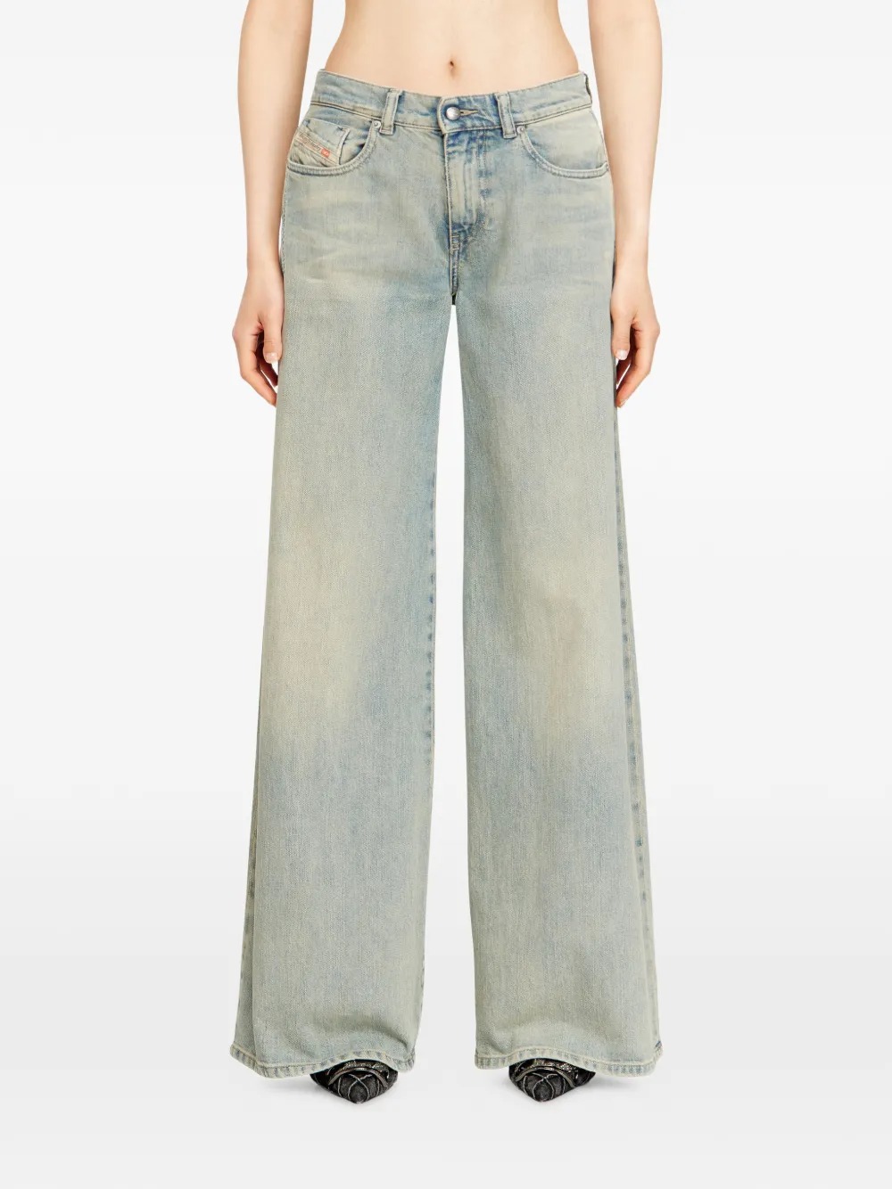 Diesel 1978 D-Akemi blue cotton jeans with a hidden zipper, button and belt loops, and a straight hem.