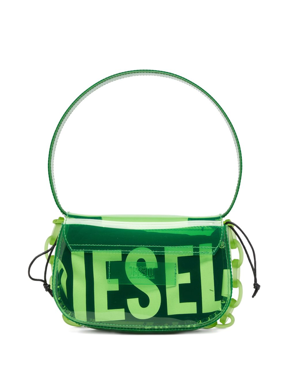 Diesel 1DR shoulder bag in TPU with a handle, magnetic flap, and removable shoulder strap.