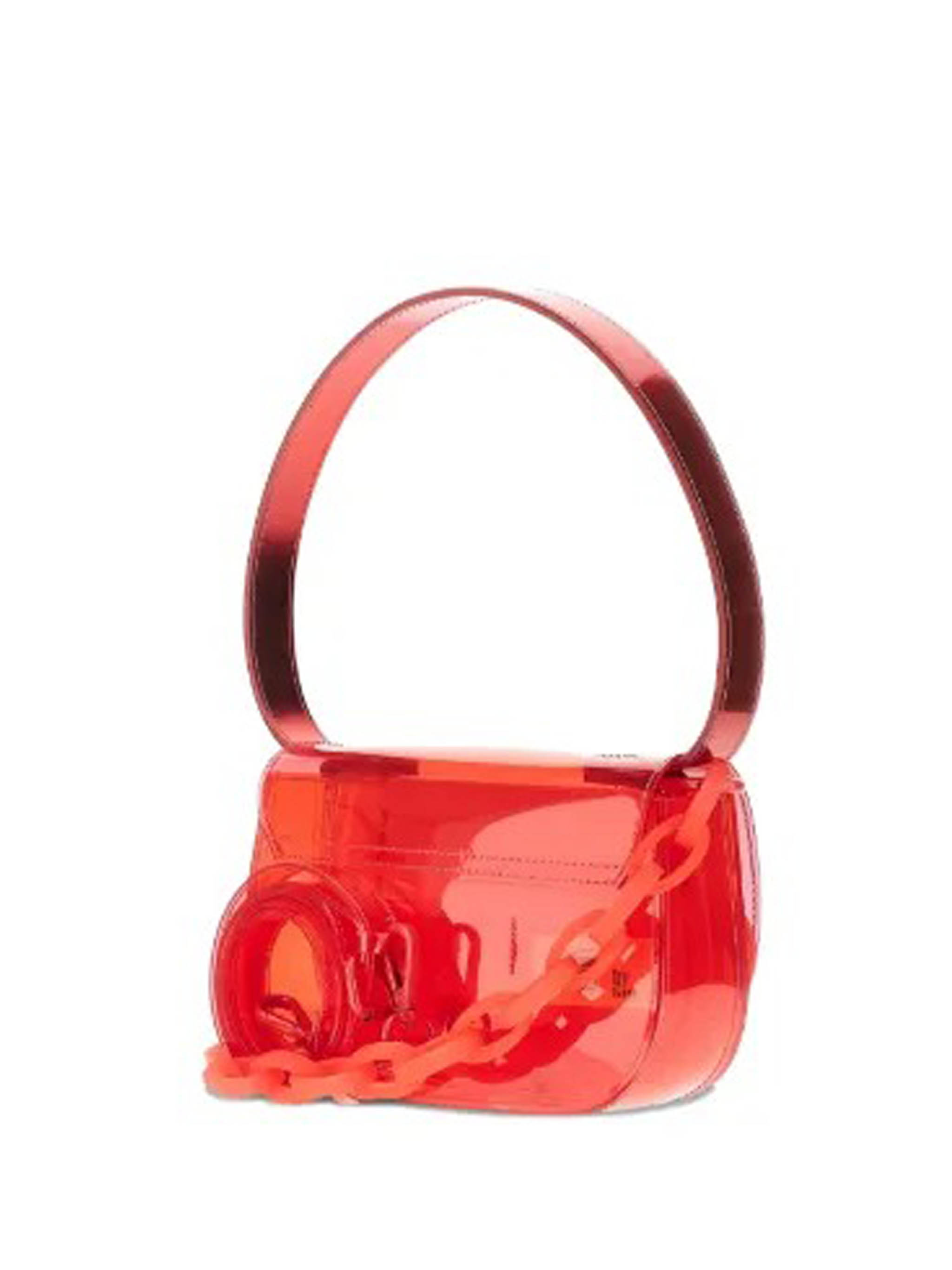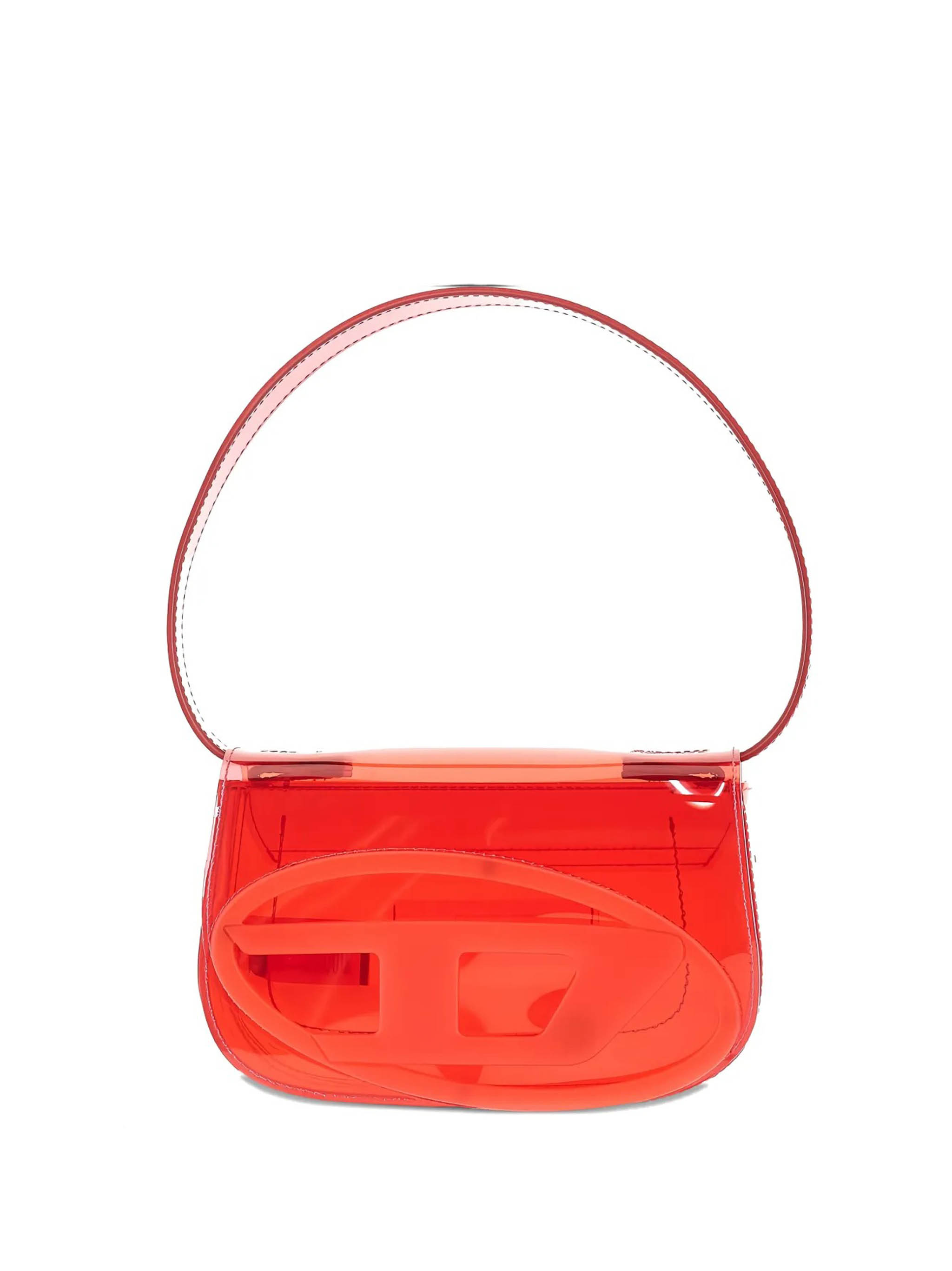 Diesel 1DR shoulder bag in TPU with a handle, magnetic flap, and removable shoulder strap.
