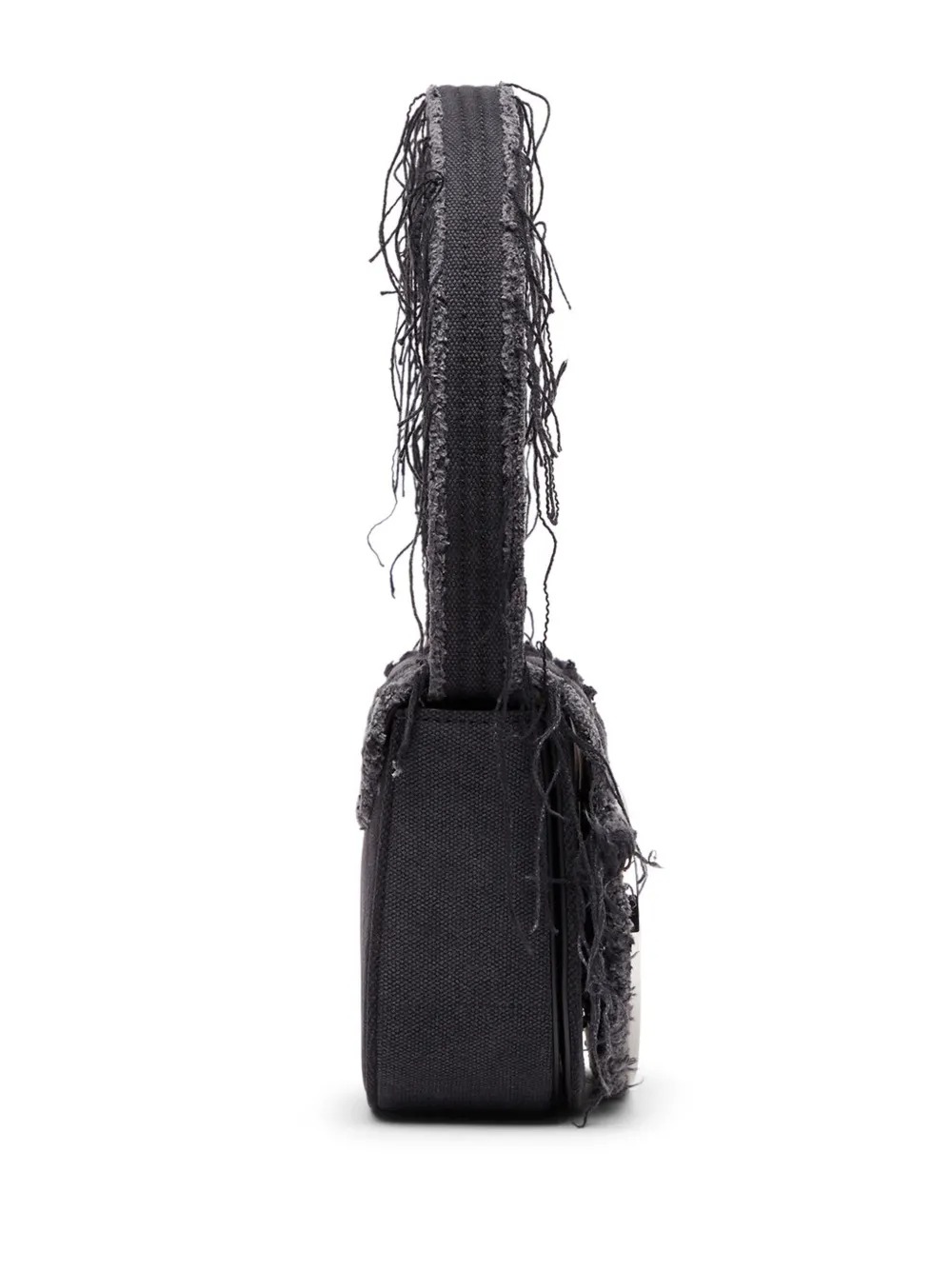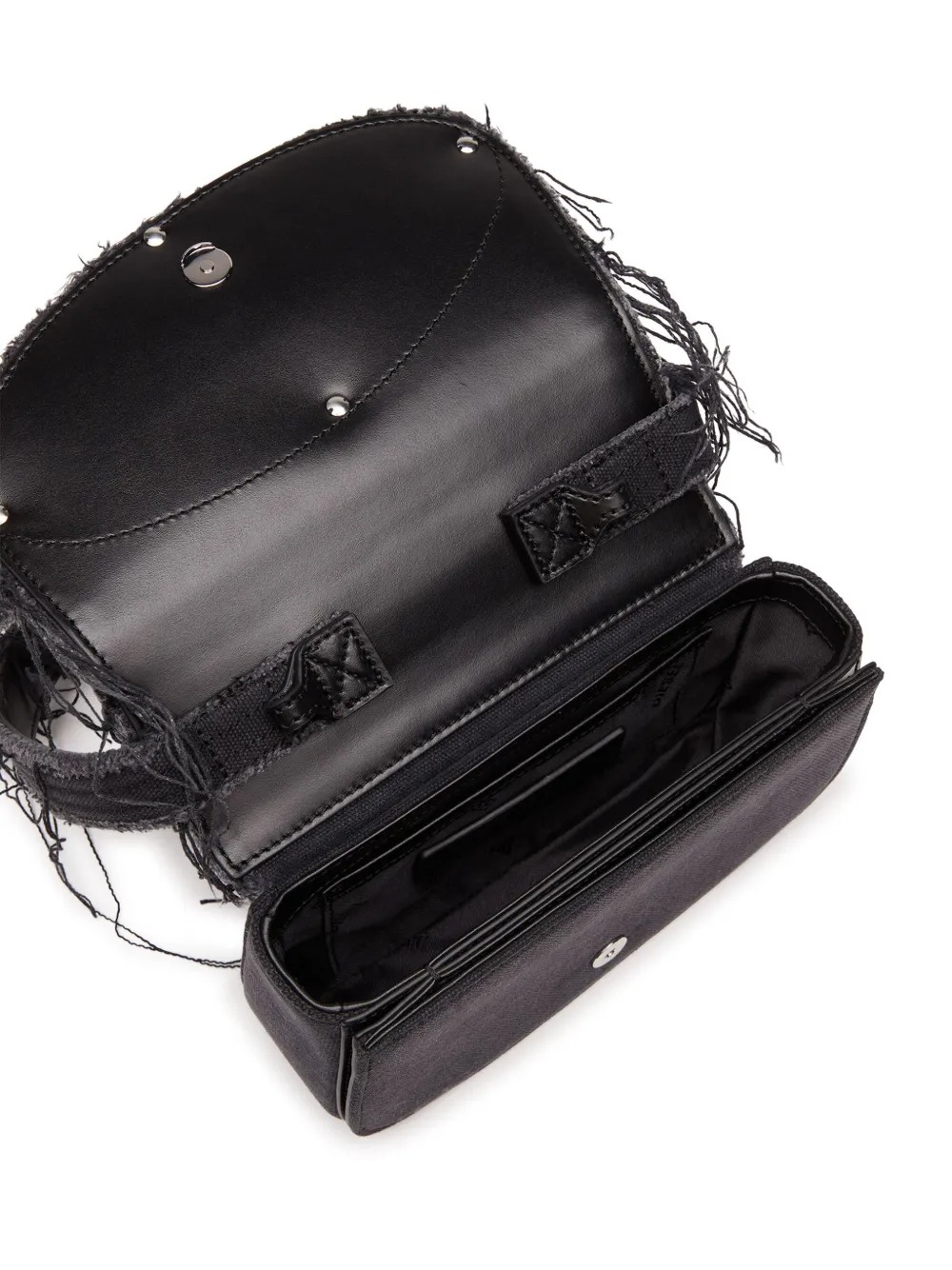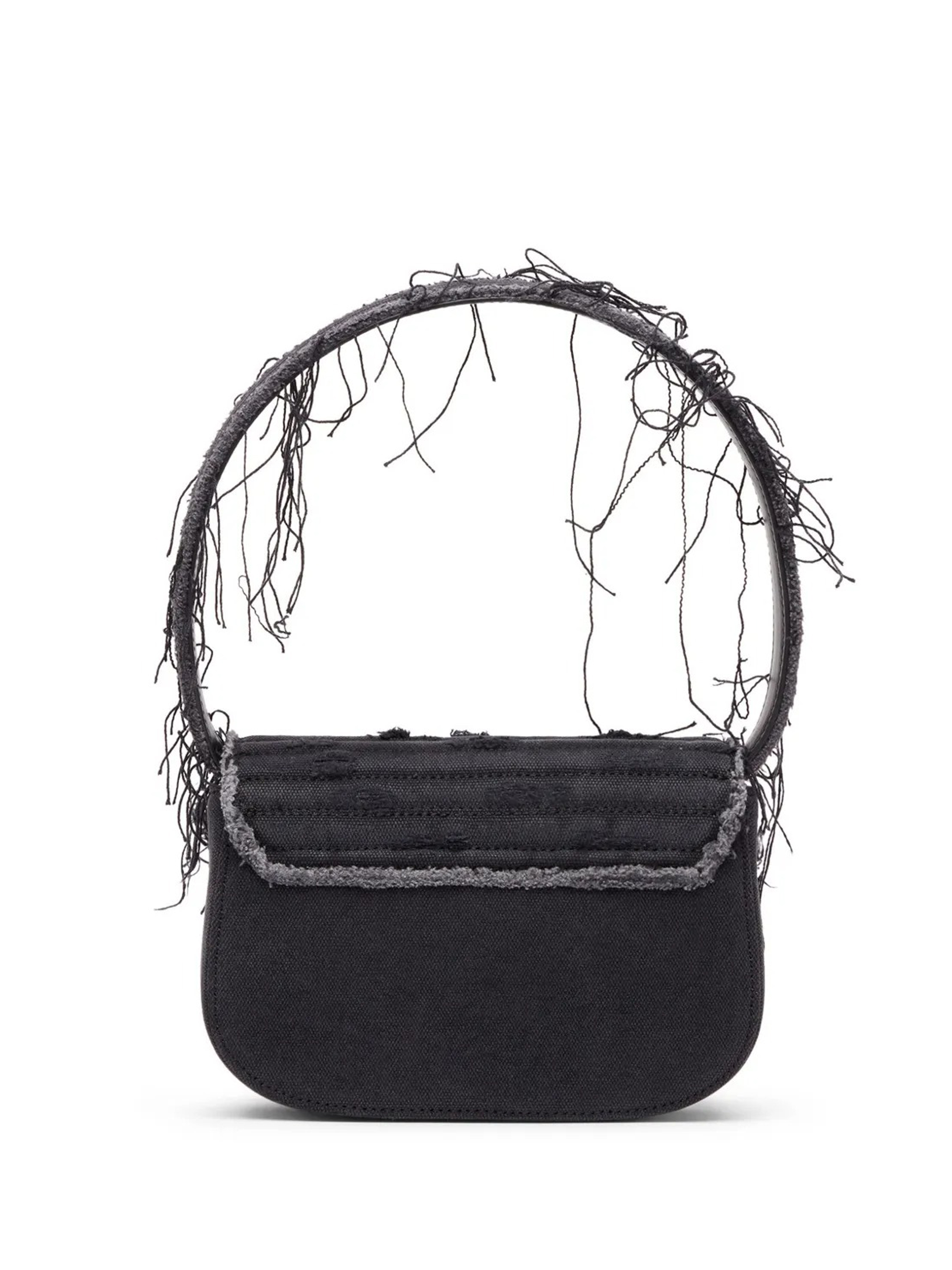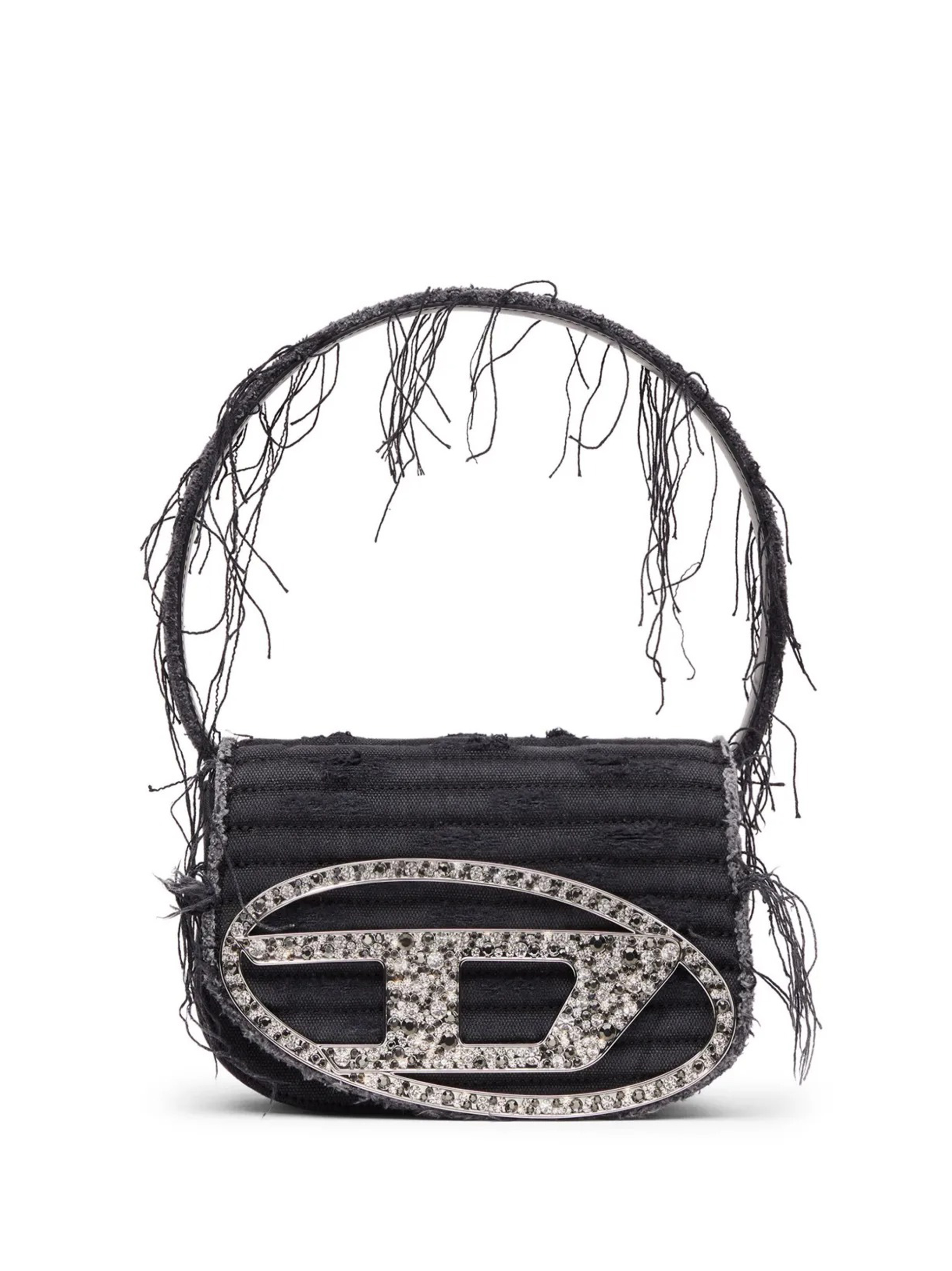 Black 1DR shoulder bag by Diesel in cotton with handle, magnetic flap, removable shoulder strap, and metal "D" logo plaque.