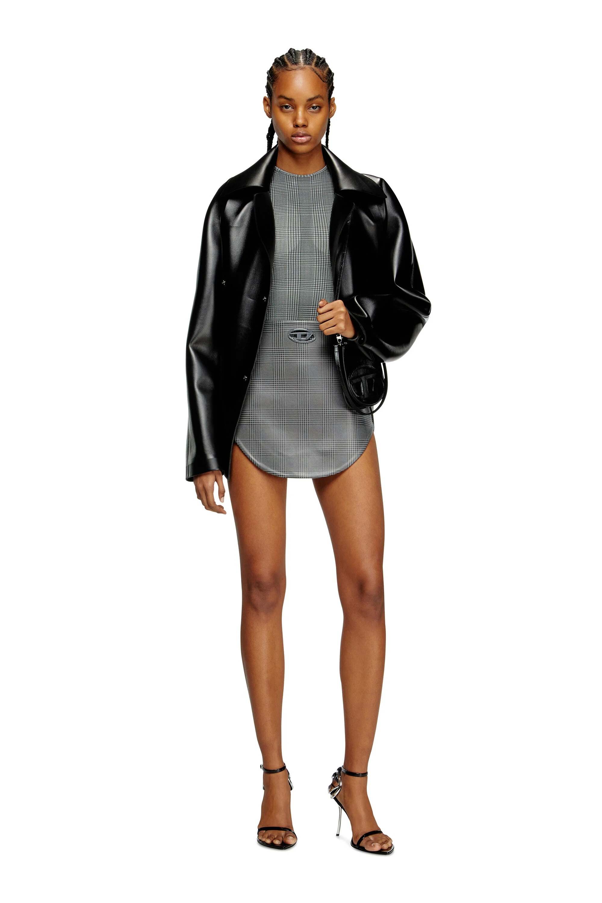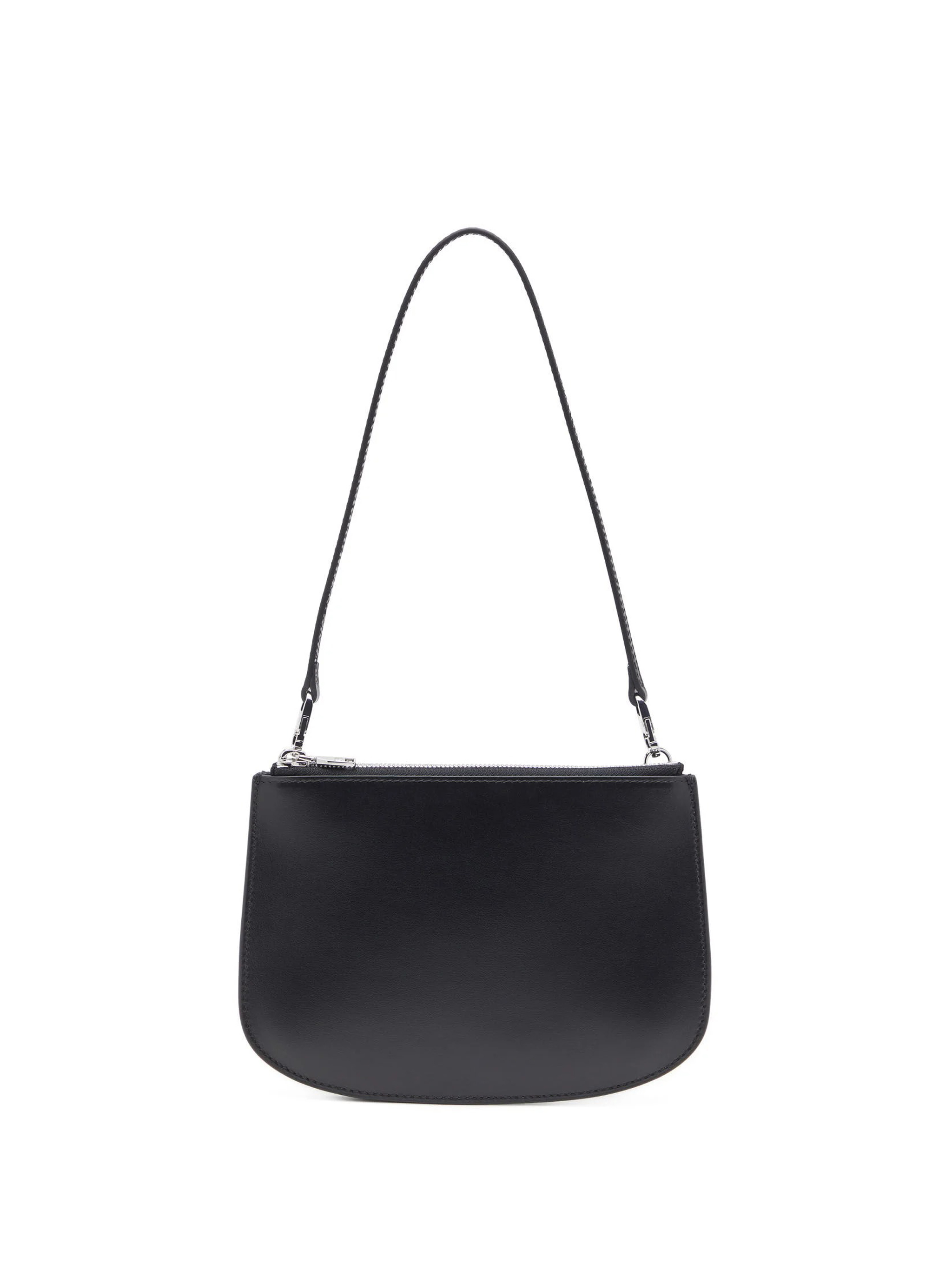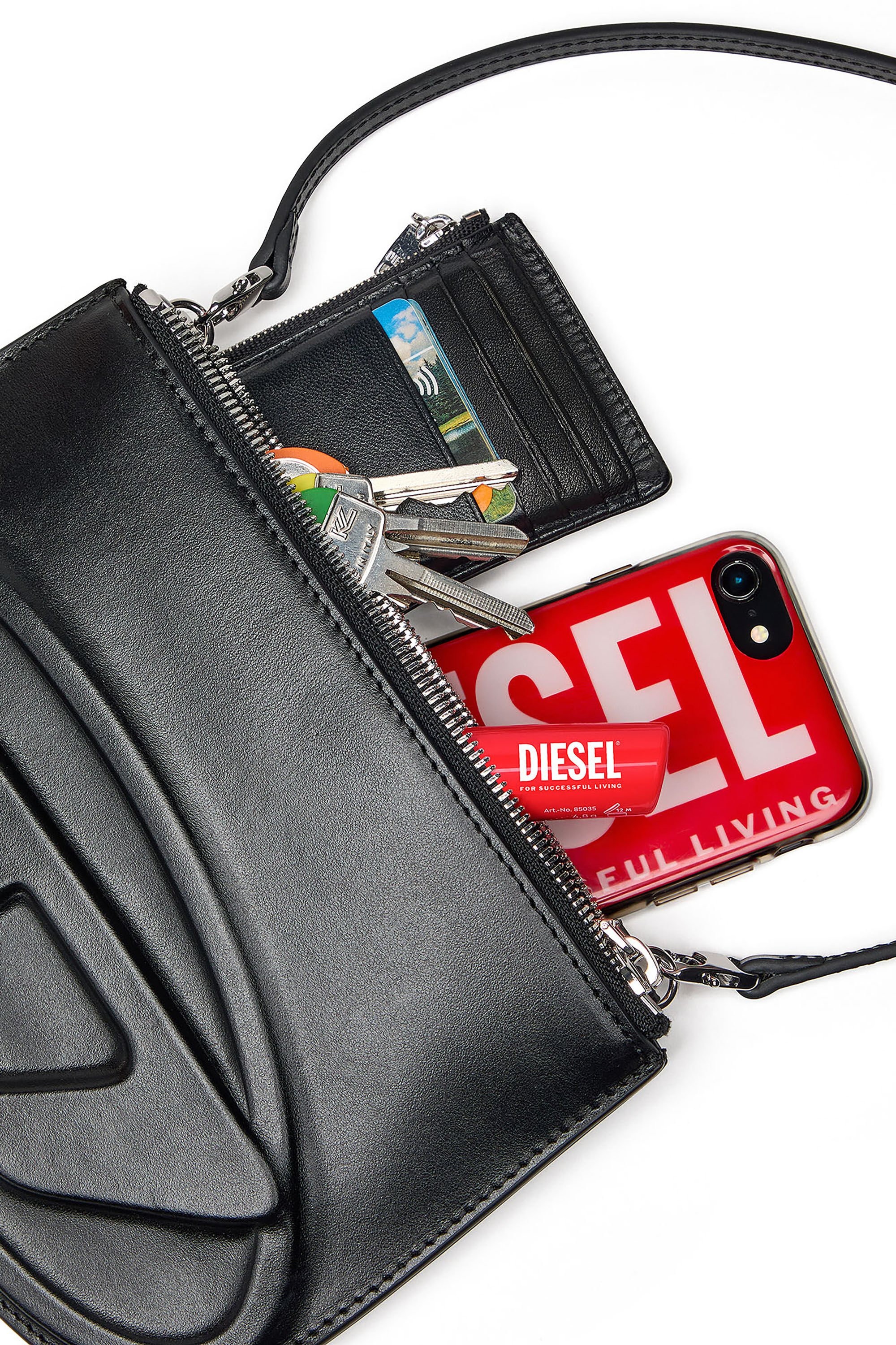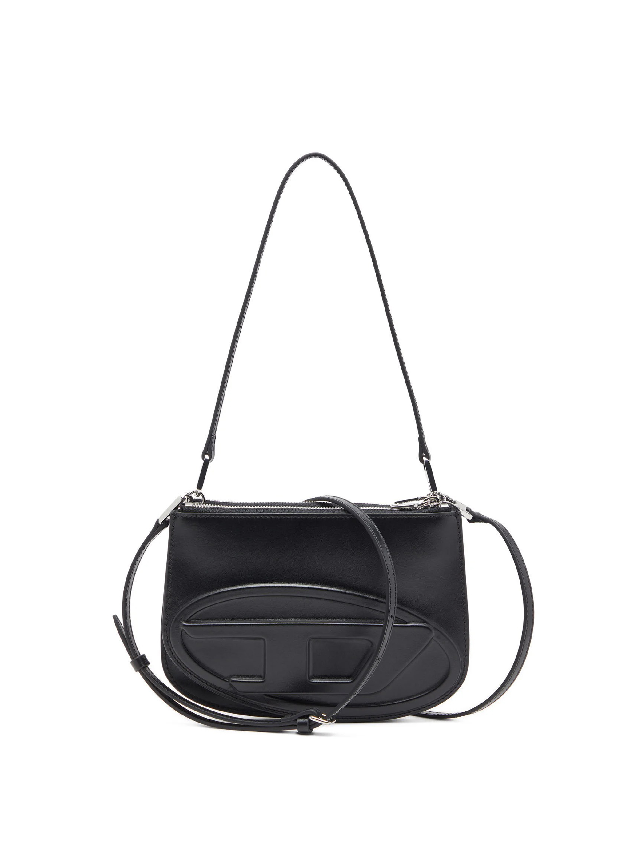 Black 1DR Twin shoulder bag by Diesel in leather with handle, top zip closure, removable shoulder strap, and metal "D" logo plate.