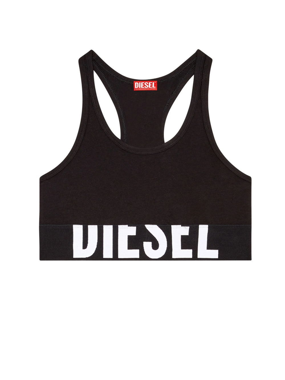 Black Diesel cotton top with round neckline, Olympic design, elasticated with contrasting logo.