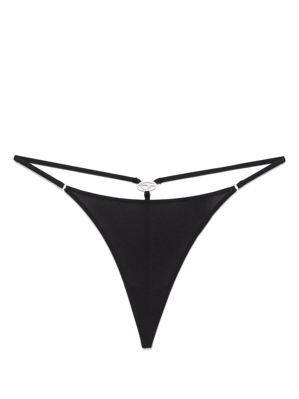 Black D-strimg Dnm thong by Diesel in cotton with oval plaque featuring the D logo.