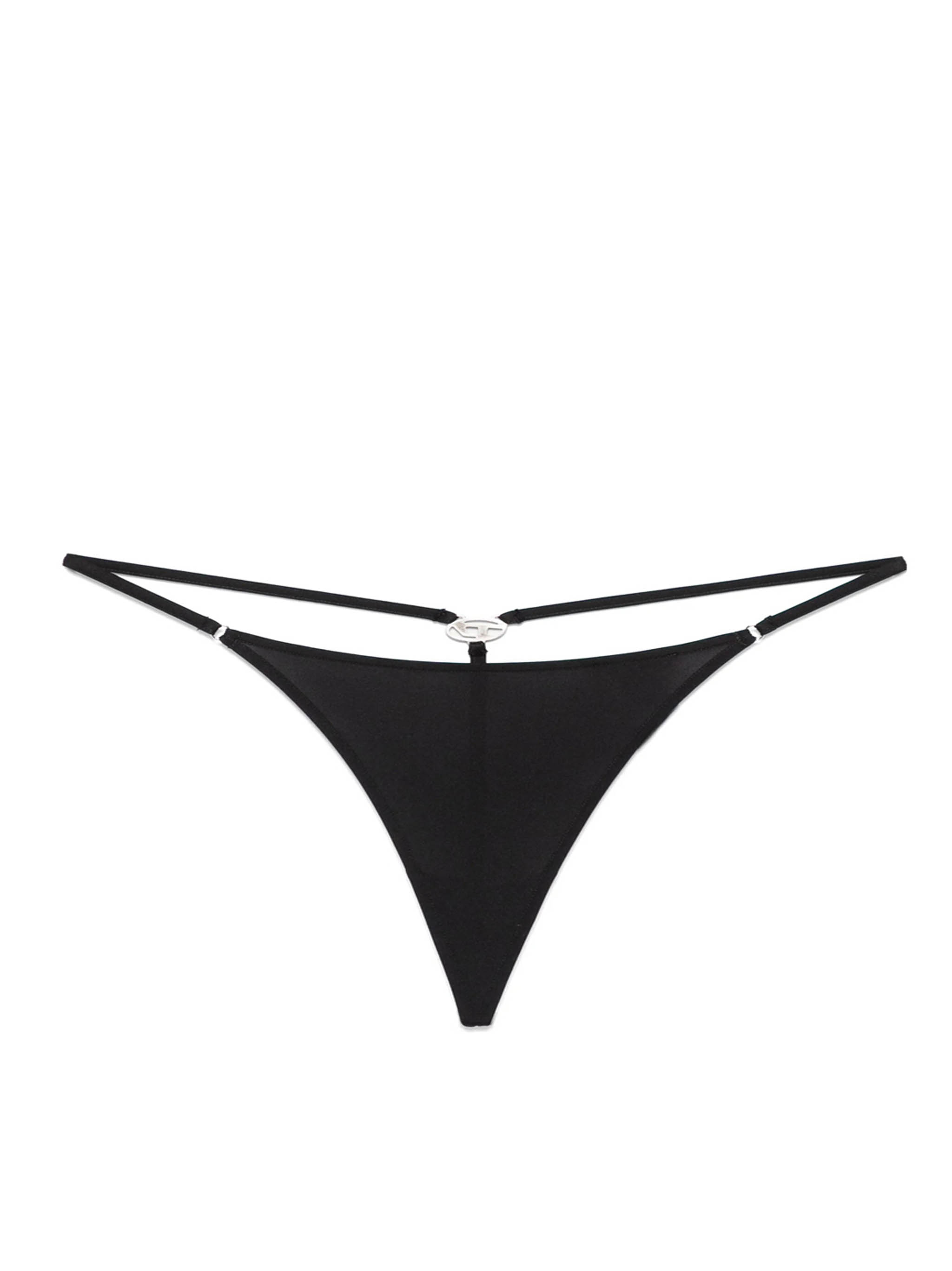 Black D-strimg Dnm thong by Diesel in cotton with oval plaque featuring the D logo.