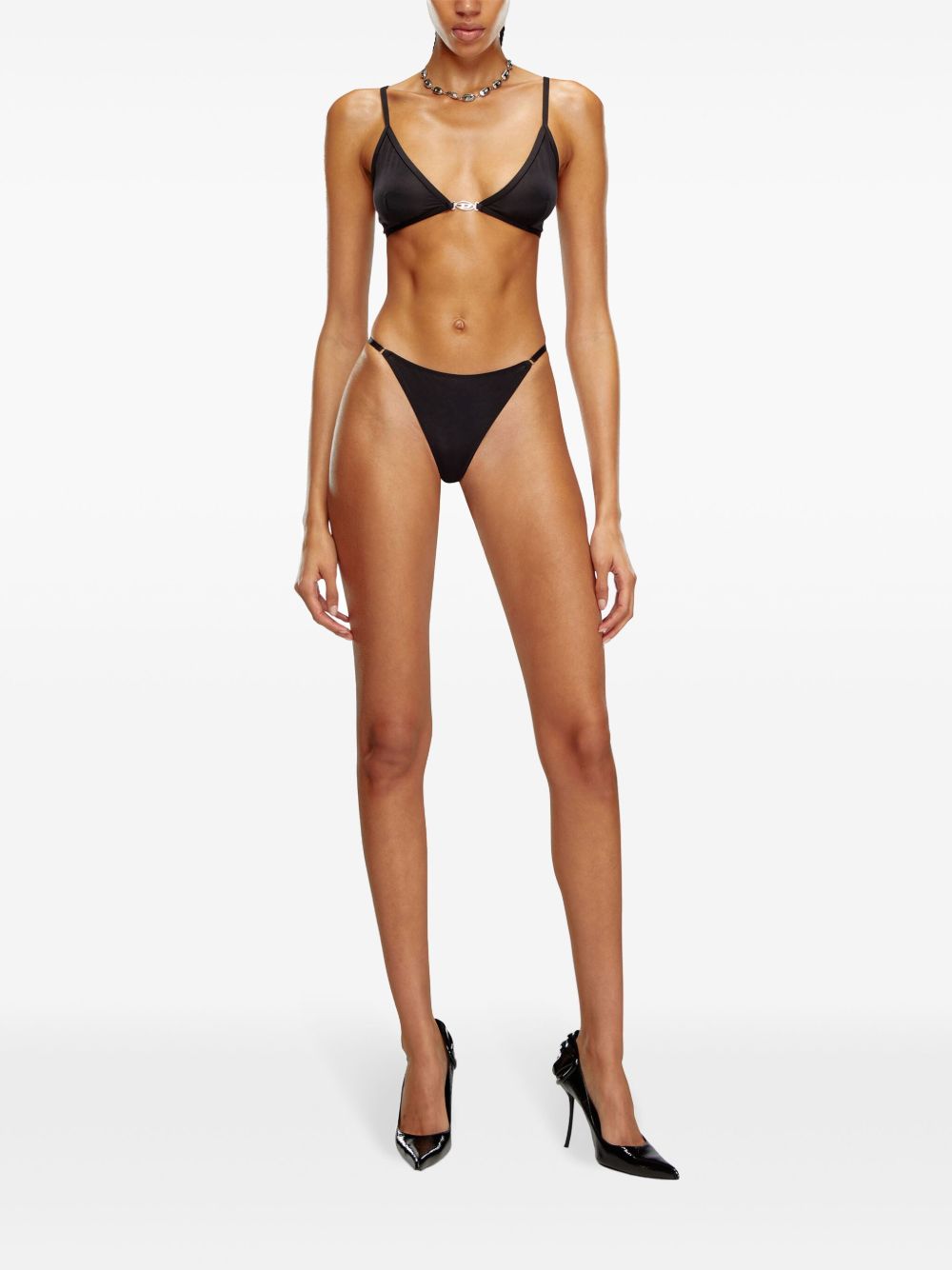 Black D-string Oval thong by Diesel in cotton with oval plaque featuring the D logo.