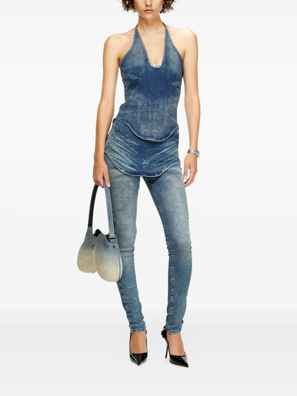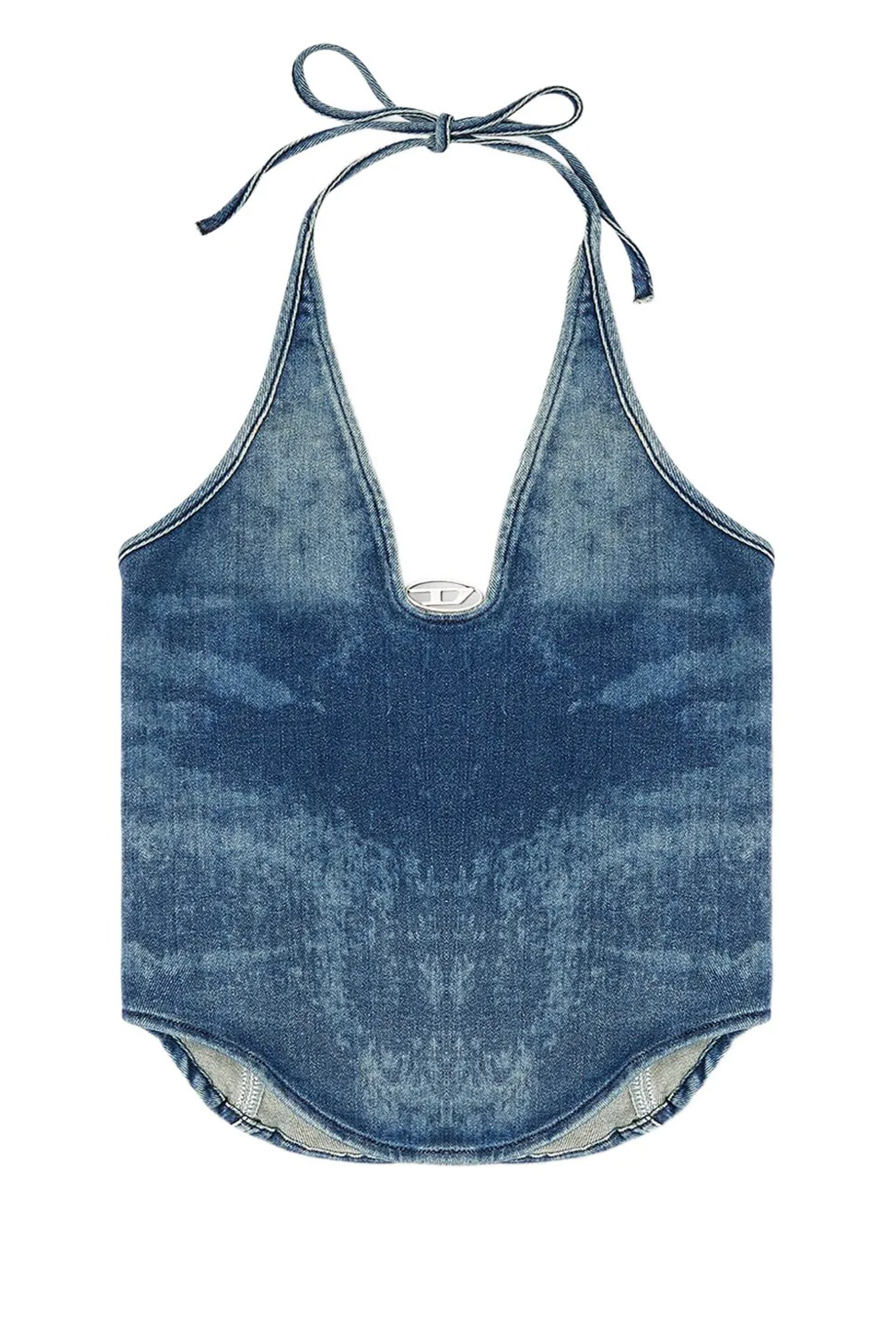 Blue De Janice S top by Diesel in cotton with halter neck and curved hem.