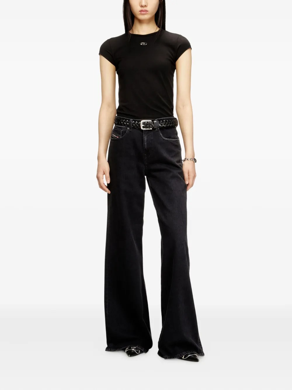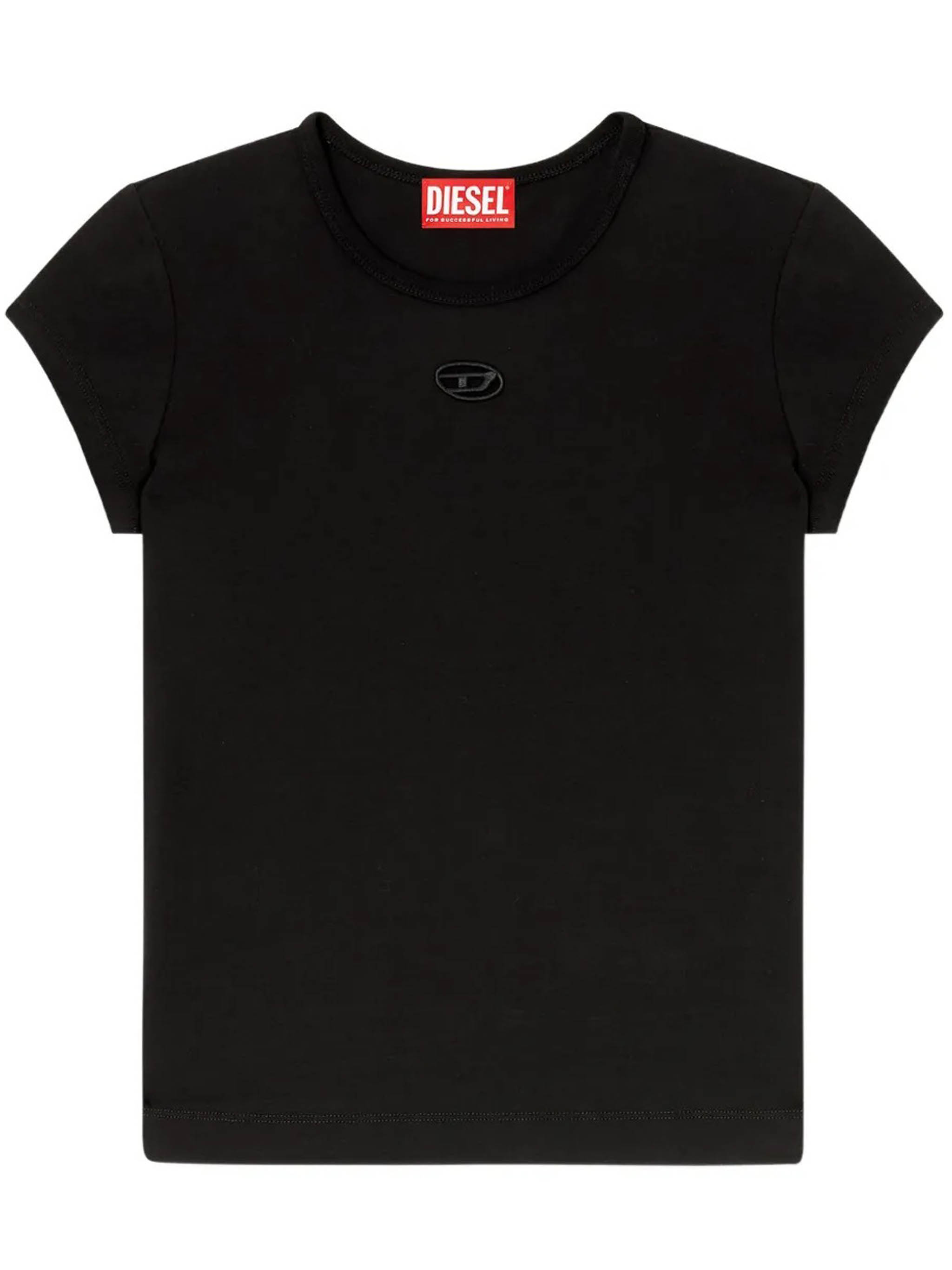 Black T-Angie OD T-shirt by Diesel, made of cotton, featuring a laser-cut design, an embroidered logo, and short sleeves.