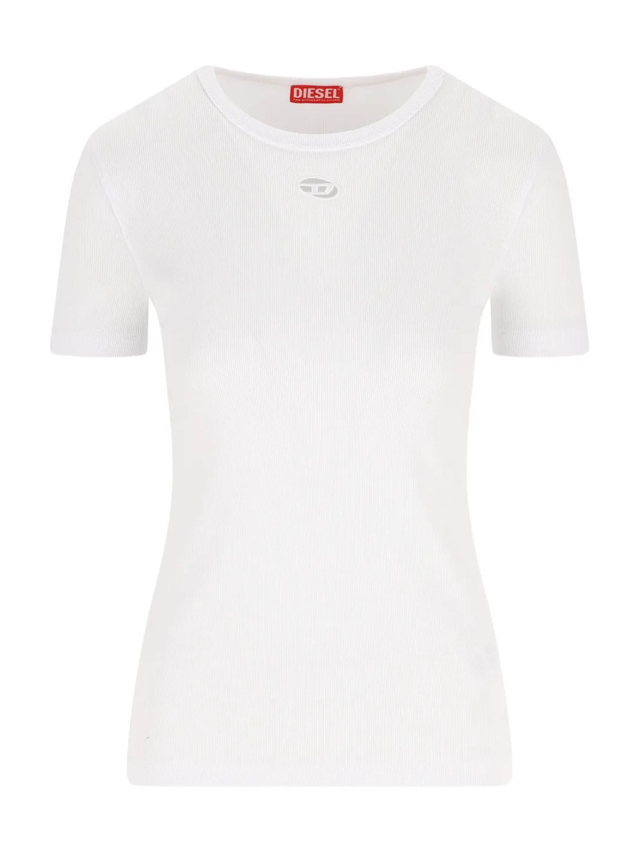 Diesel T-Ribber OD white cotton T-shirt with a ribbed design, logo detail, crew neck, and short sleeves.
