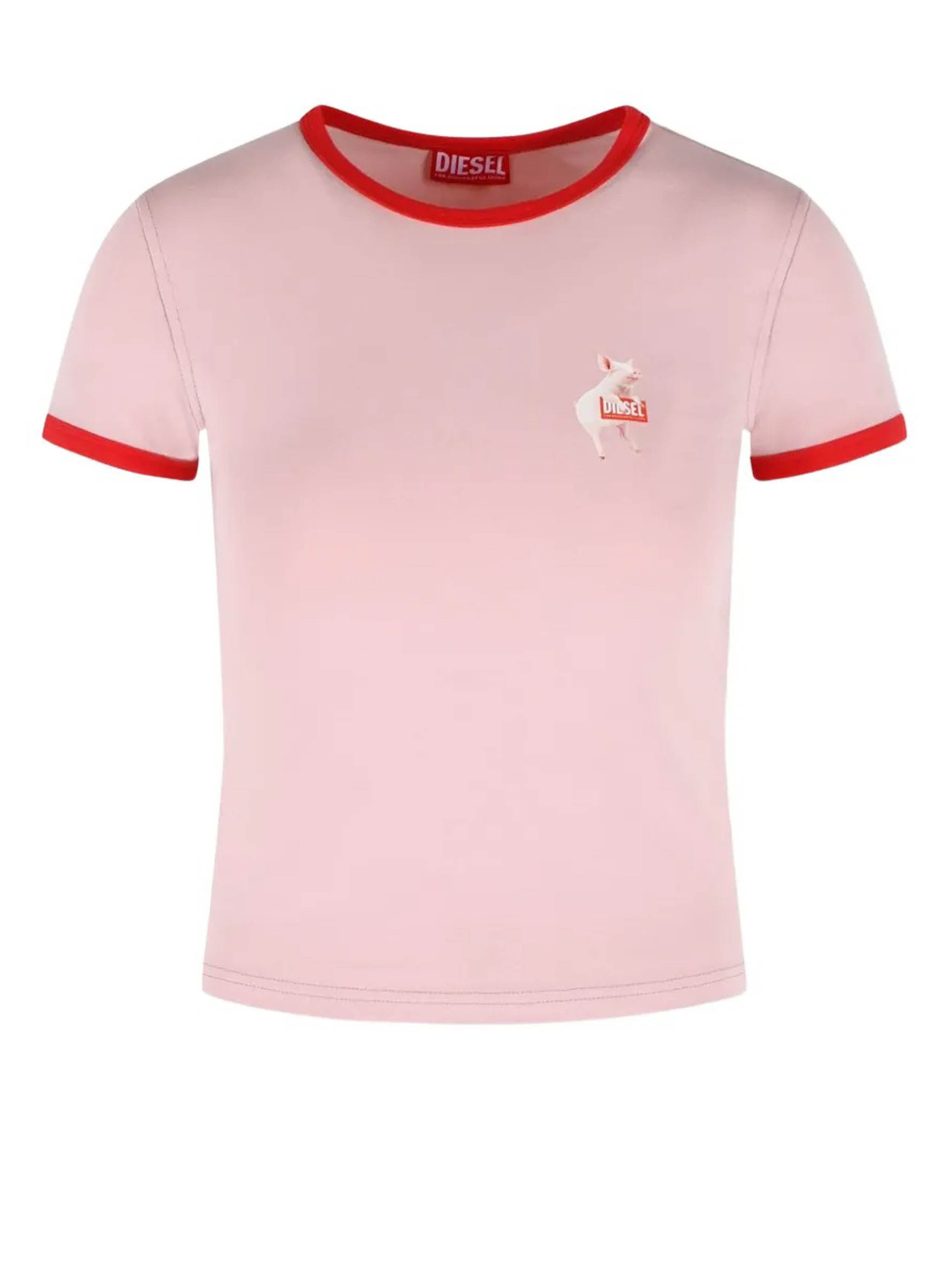 Diesel Uncuties Long S12 pink cotton T-shirt with print, crew neck, and short sleeves.