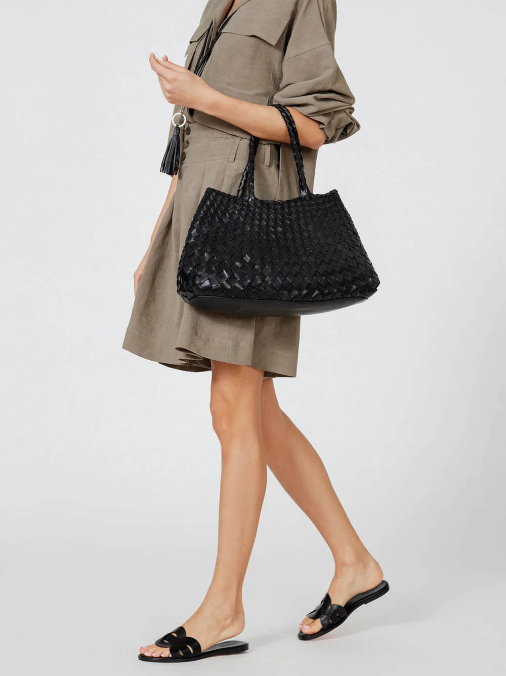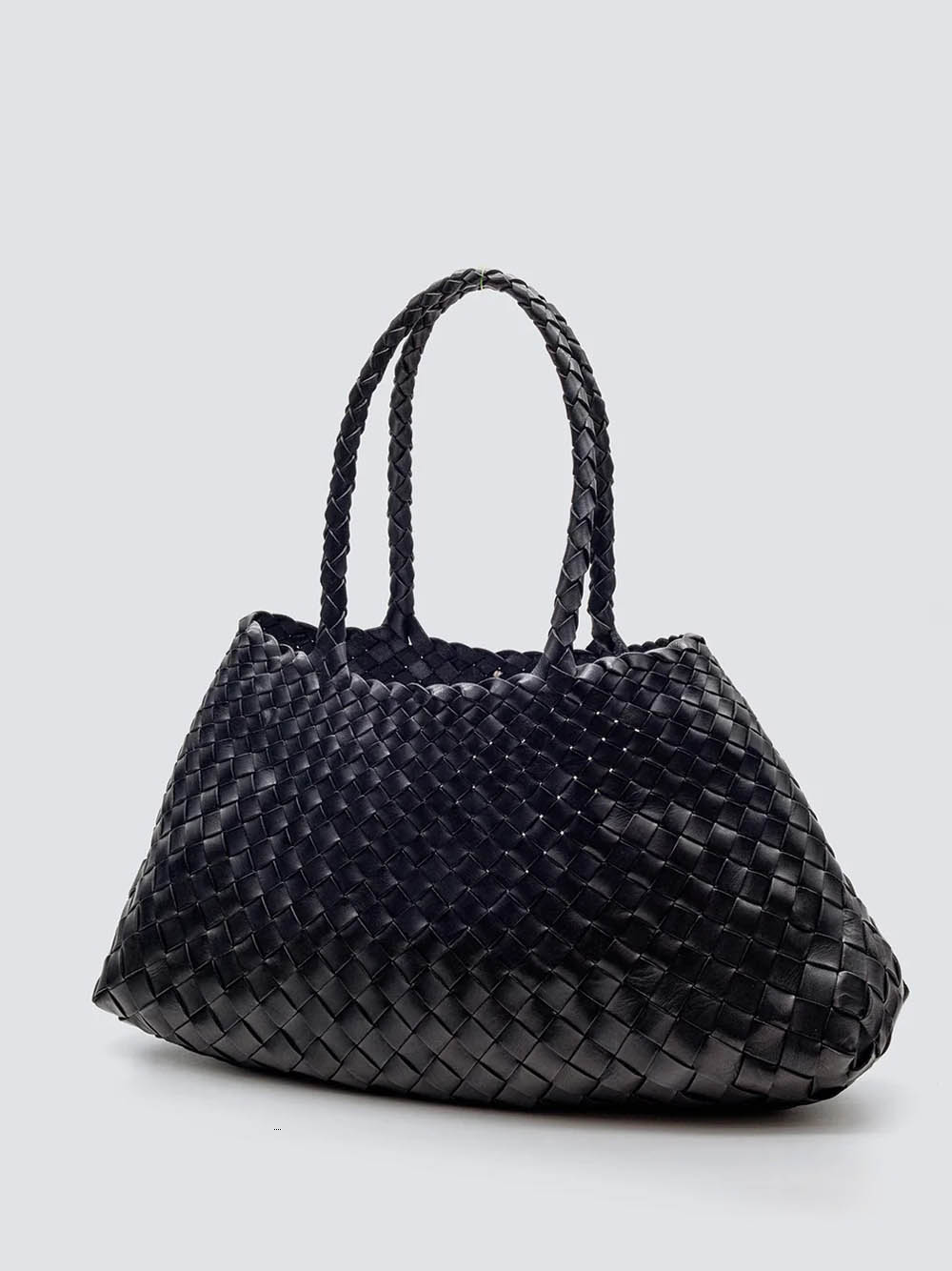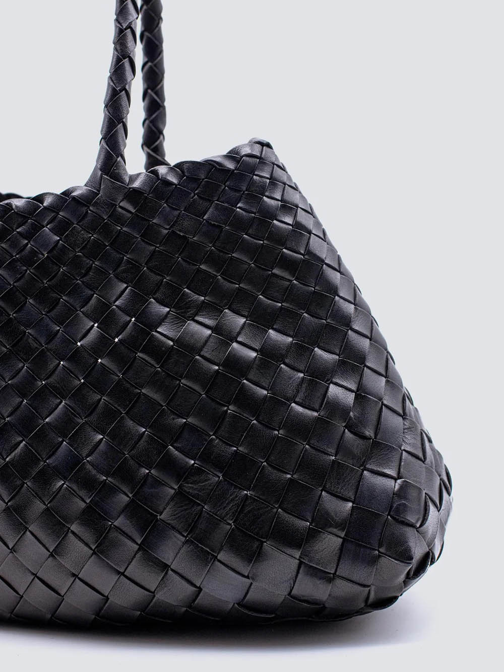 Santa Croce Big black bag by Dragon Diffusion in leather with two handles and woven texture.