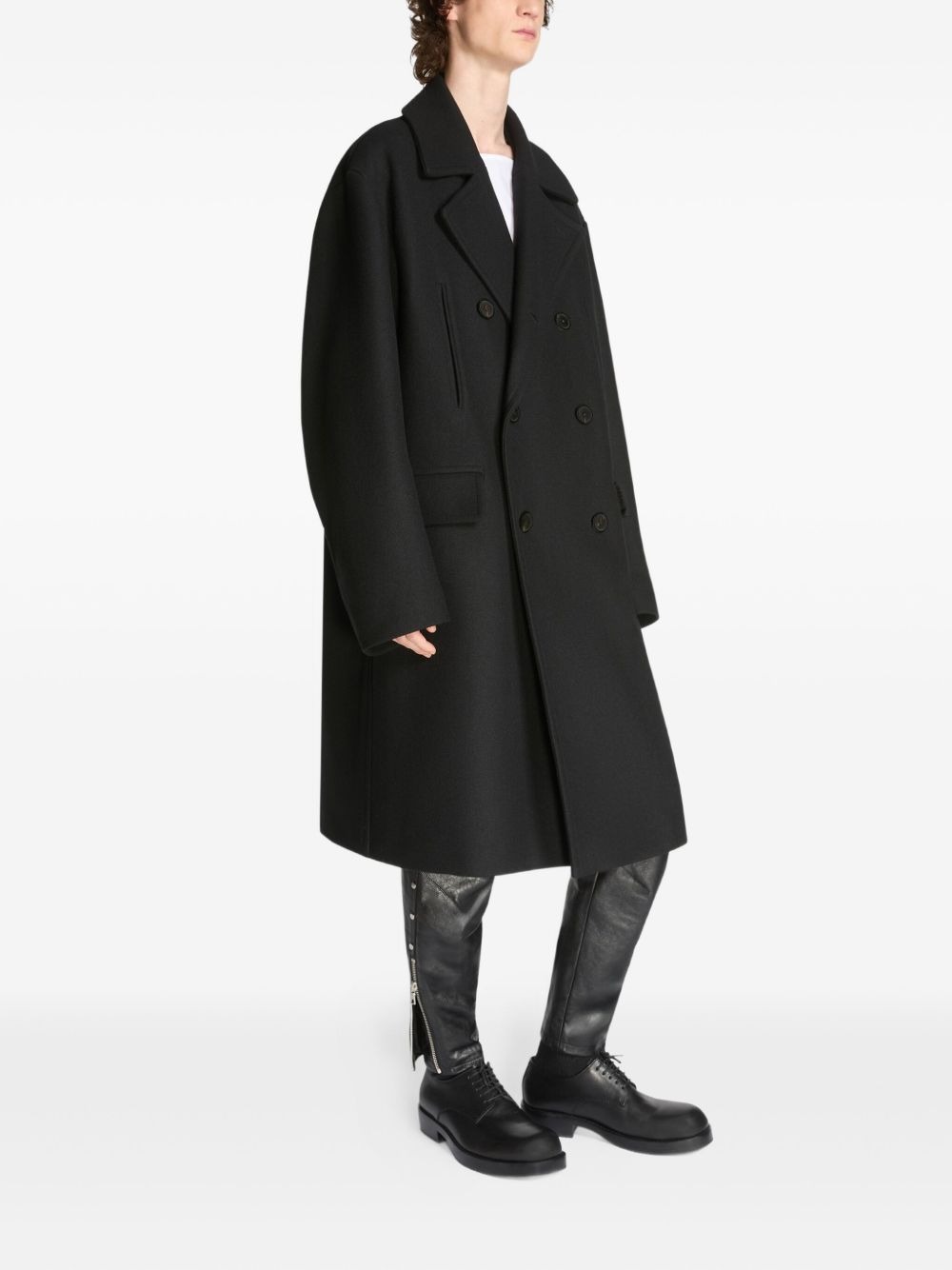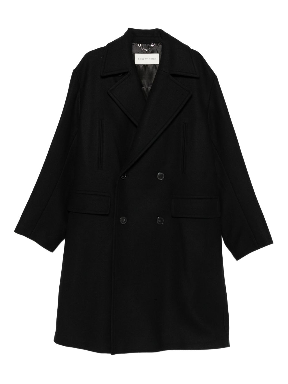 Black coat 00010 Racos 2216 M.W. by Dries Van Noten in wool with double-breasted closure, long sleeves, and straight hem.