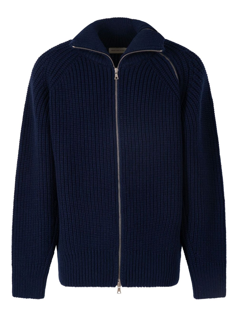 Maglione navy 03190 Monty Bis 2707 M.K. di Dries Van Noten di Lana con chiusura fronatle a doppio cursore, collo alto e orlo dritto.