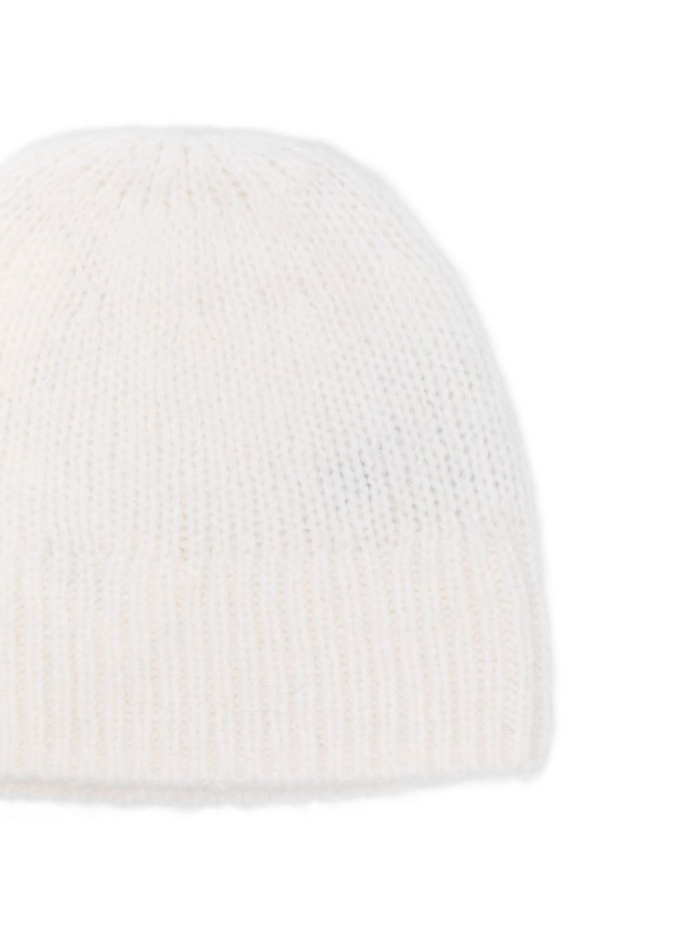 White wool beanie hat by Dries Van Noten with ribbed hem.