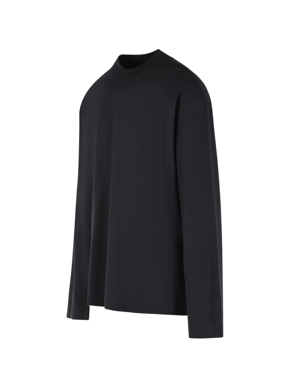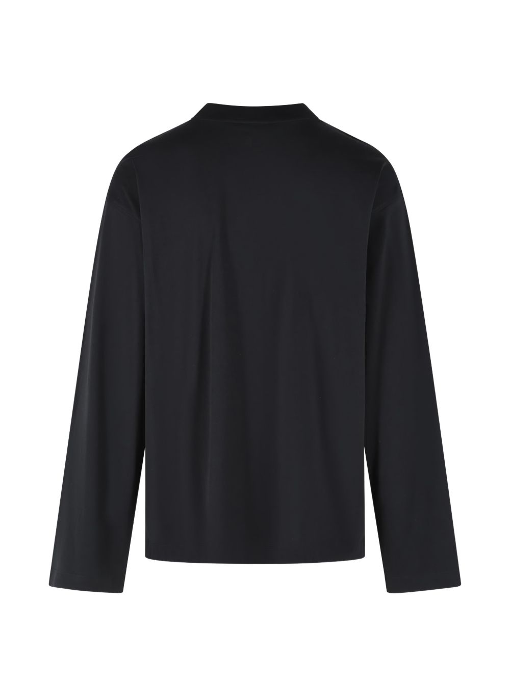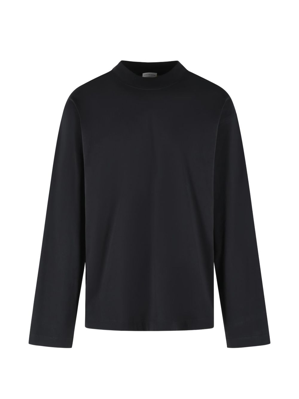 Black Heger T-shirt by Dries Van Noten in cotton with a crew neck, long sleeves, and a straight hem.