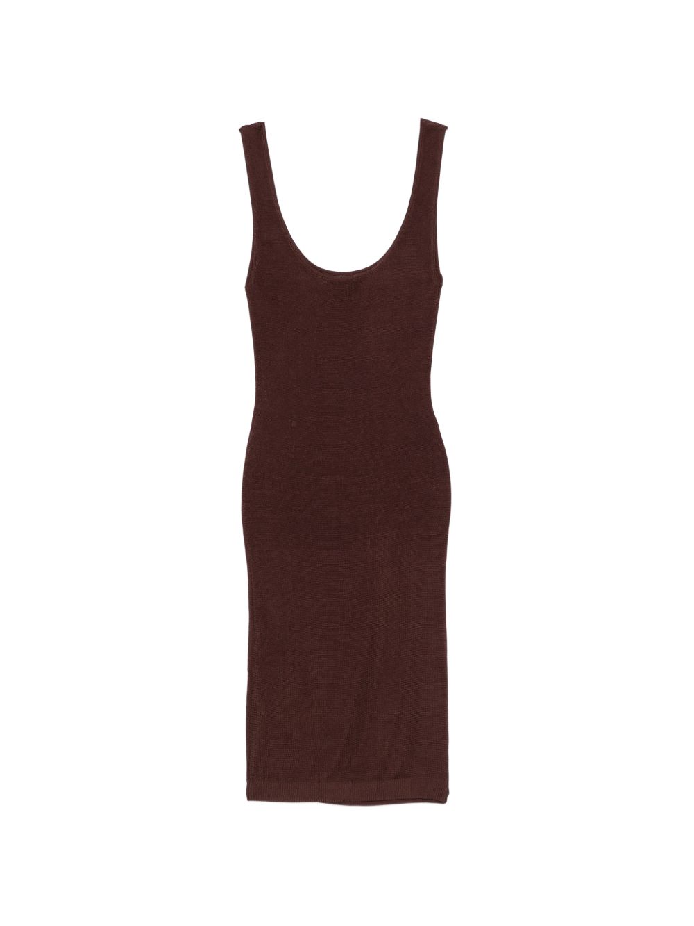 Chocolate dress by Entire Studios in viscose with square neckline, thin straps, and straight hem.