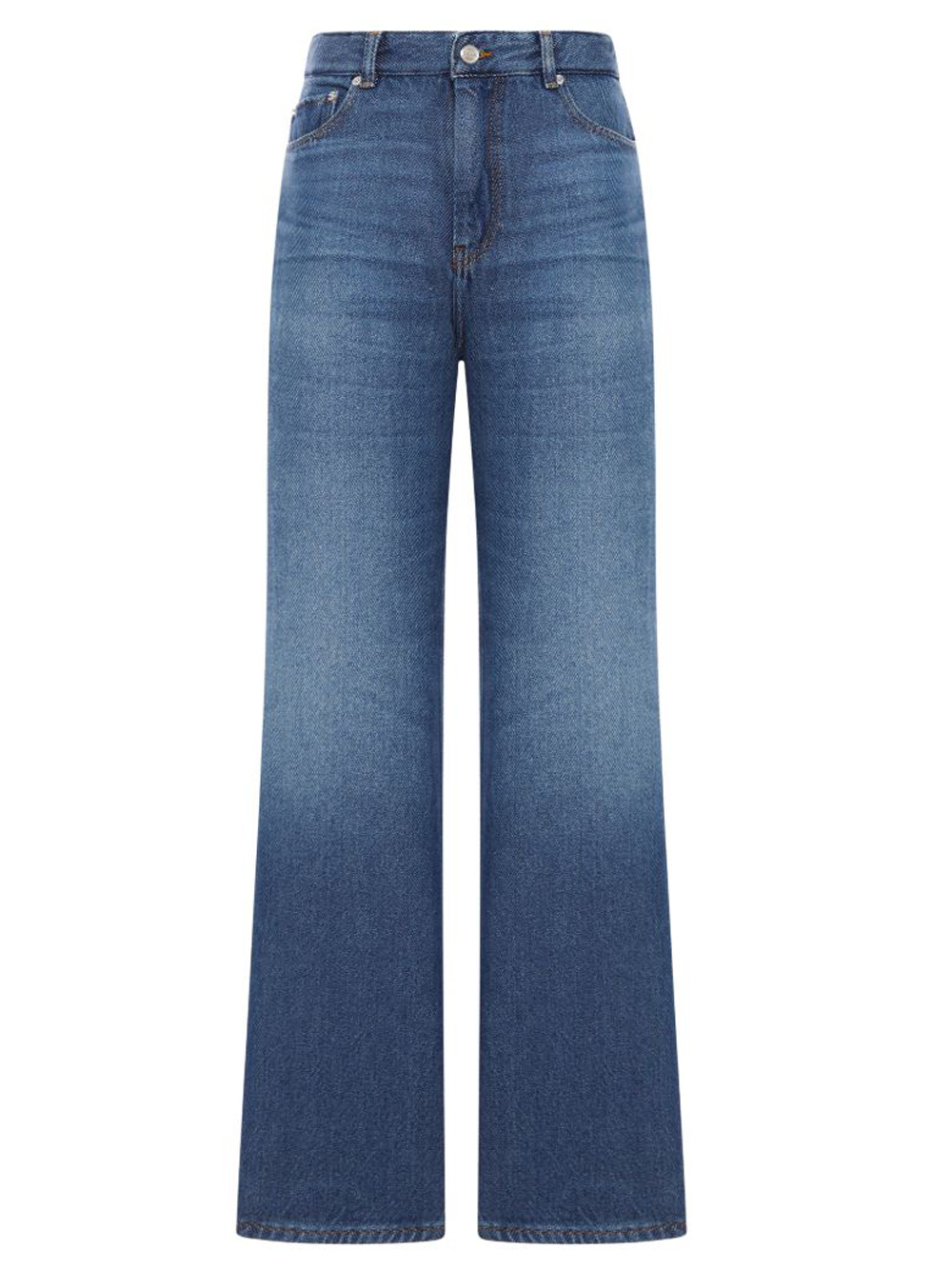 Ganni Heavy Izey blue cotton jeans with belt loops, button closure, 5-pocket design, and straight hem.