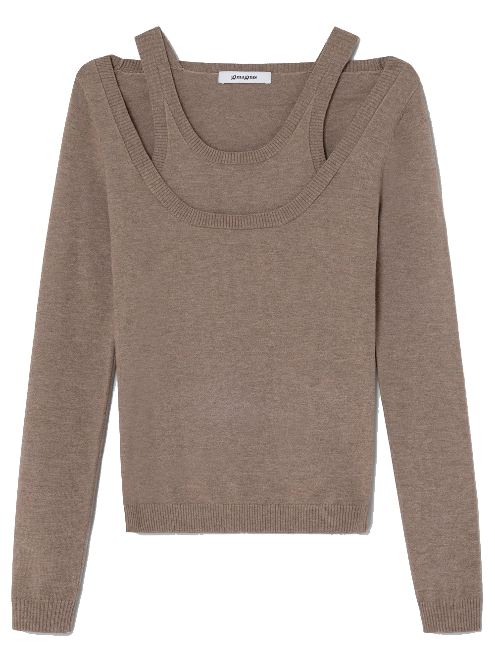 Beige Etoile Jumper by Gimaguas in viscose with double layer, thin straps, long sleeves, and straight hem.