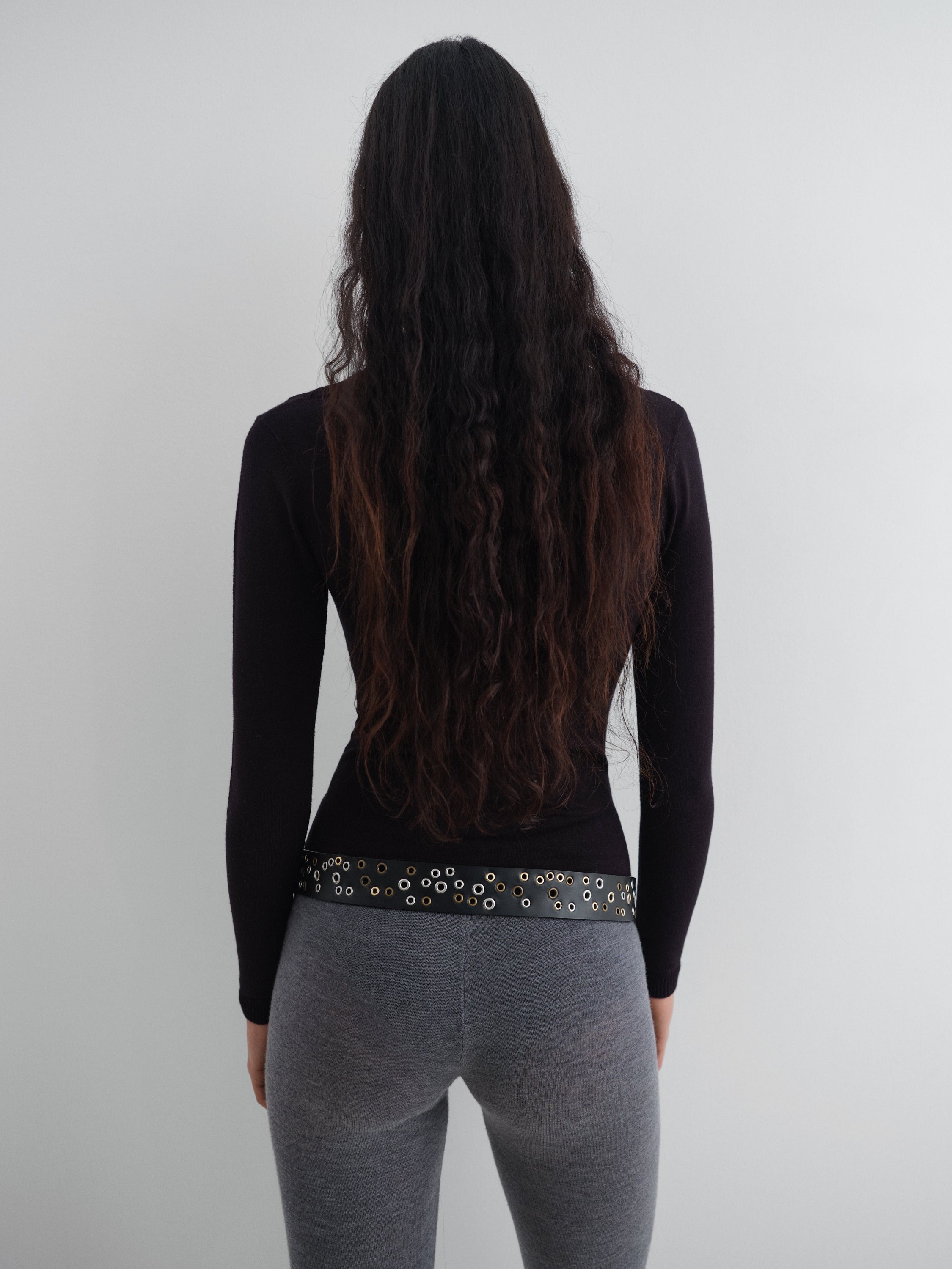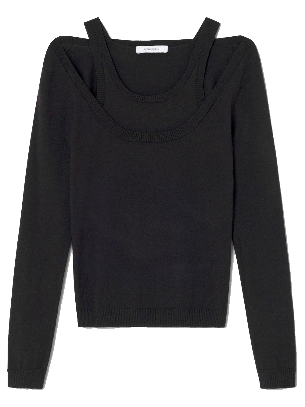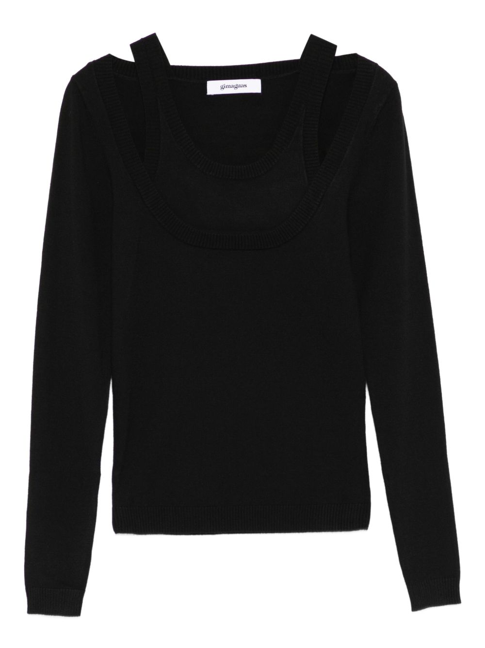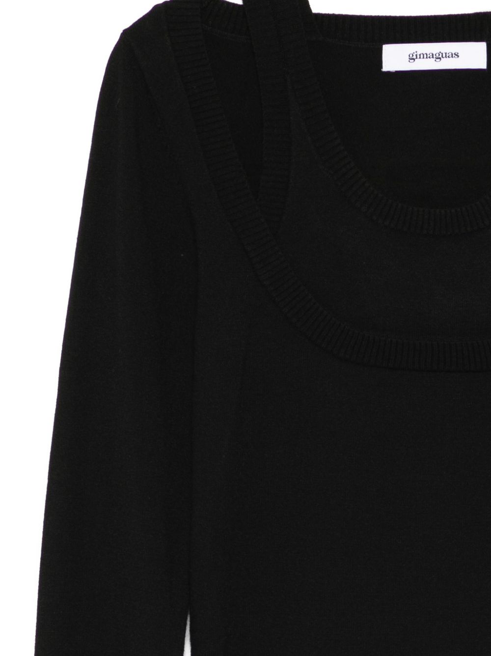 Black Etoile Jumper by Gimaguas in viscose with double layer, thin straps, long sleeves, and straight hem.