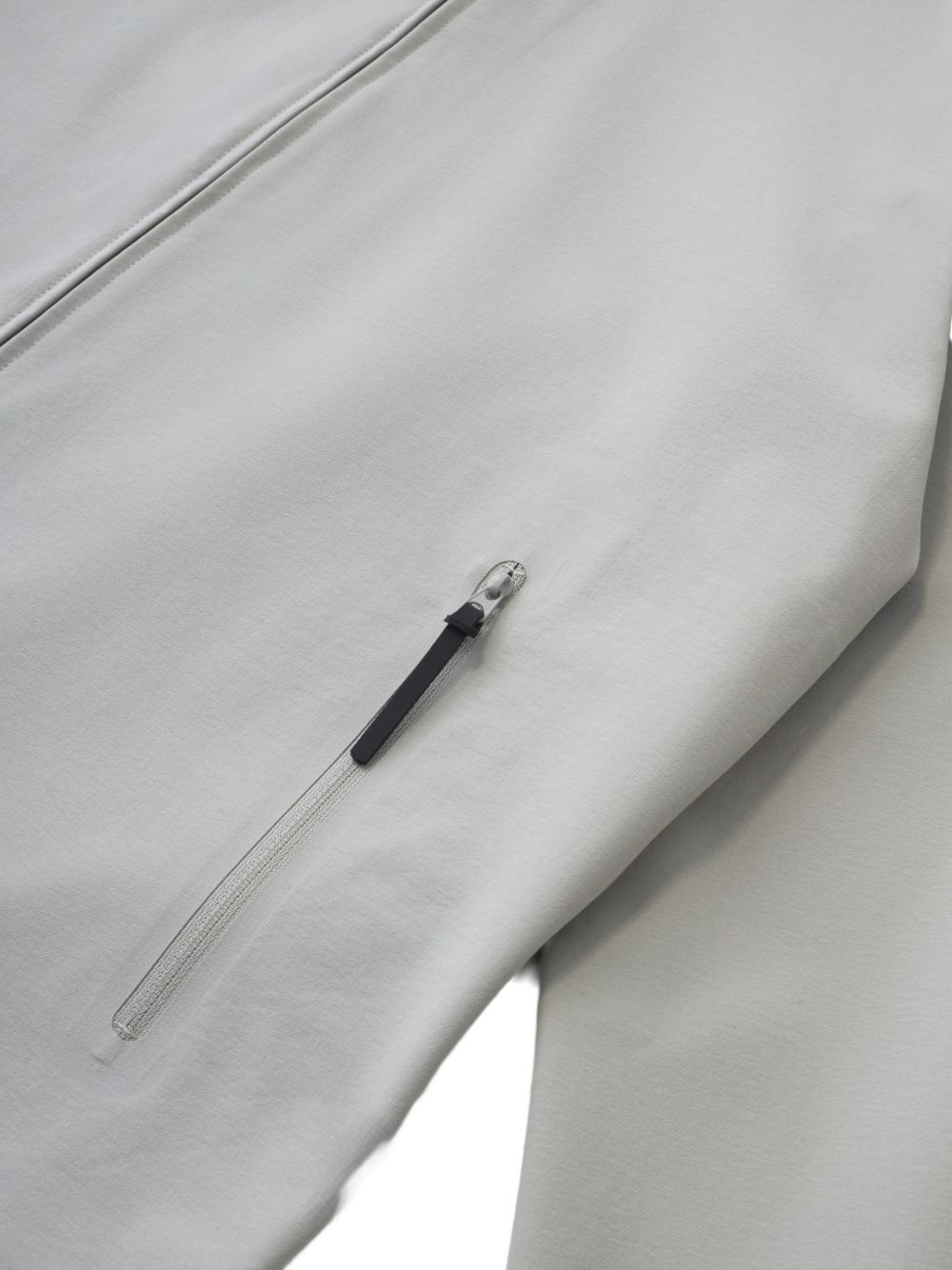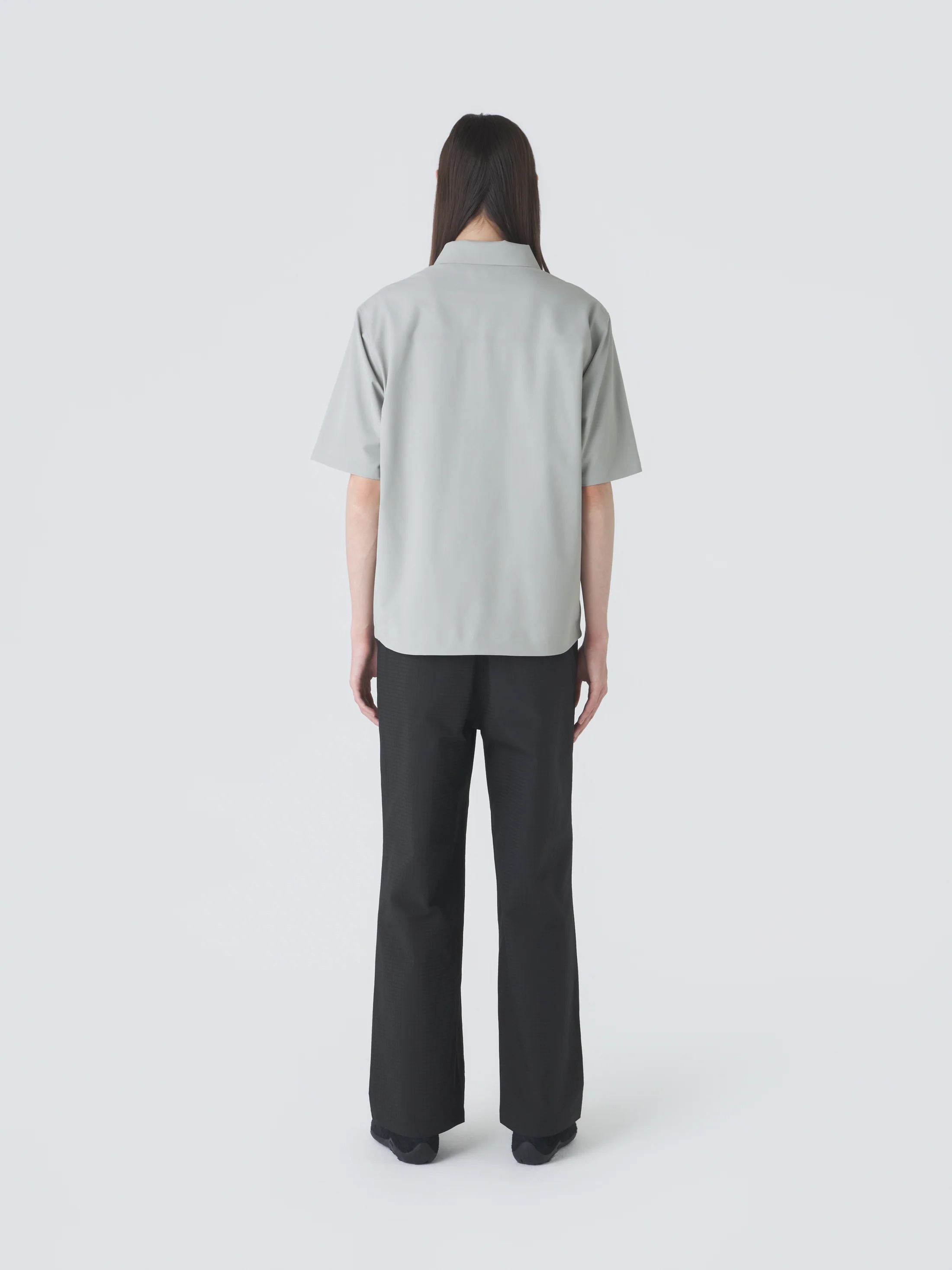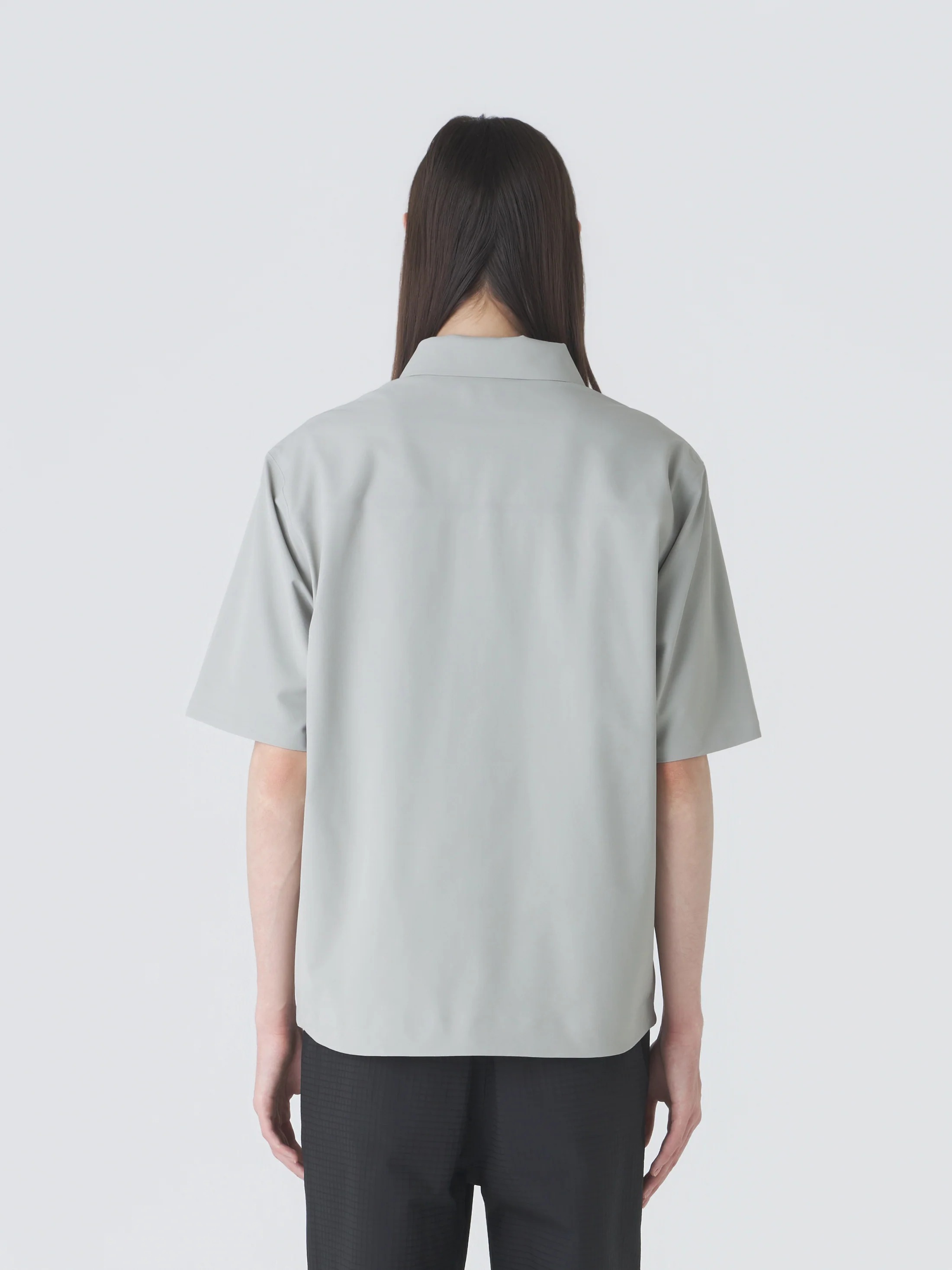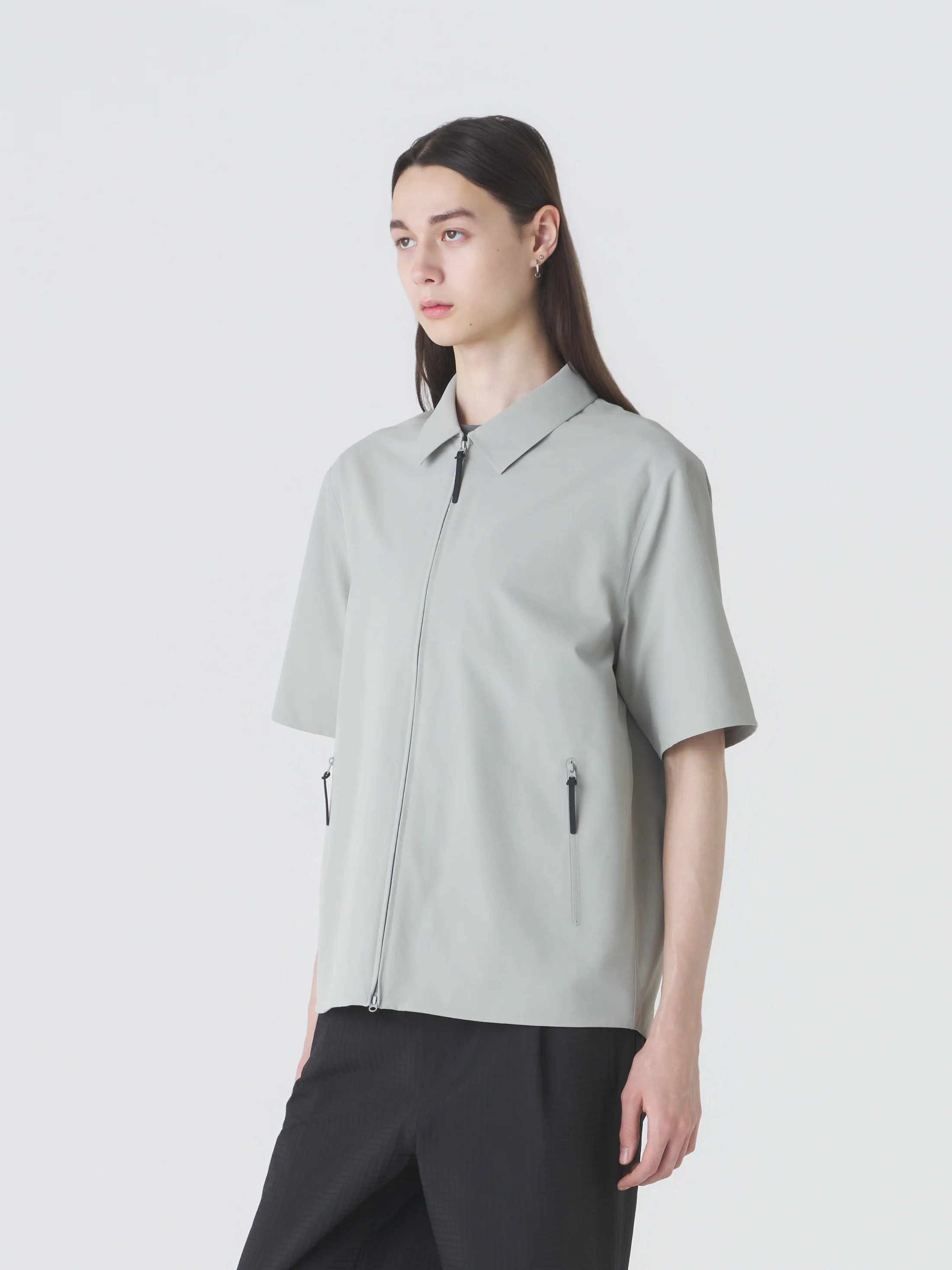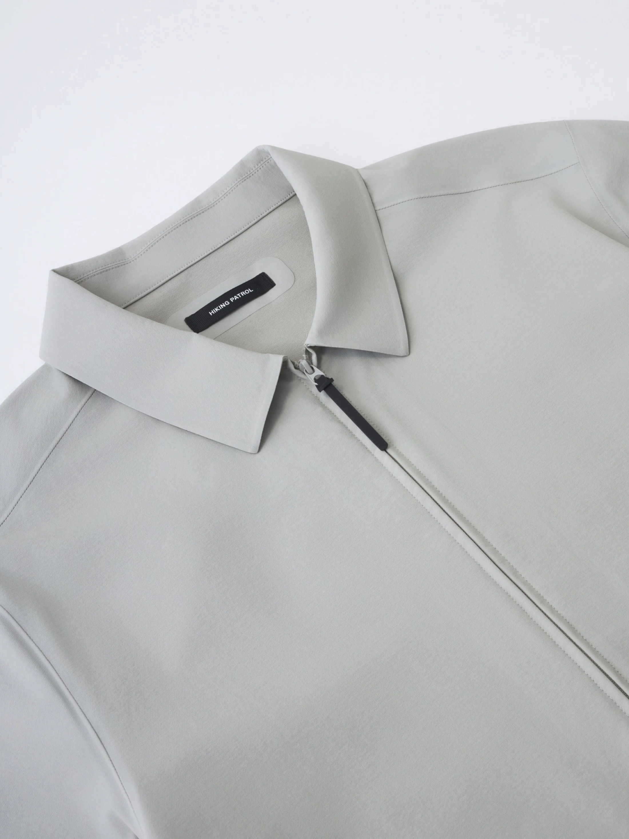 Hiking Patrol Edge LT Softshell Technical SS sage shirt in nylon with classic collar, front zip closure, side zip pockets, and straight hem.