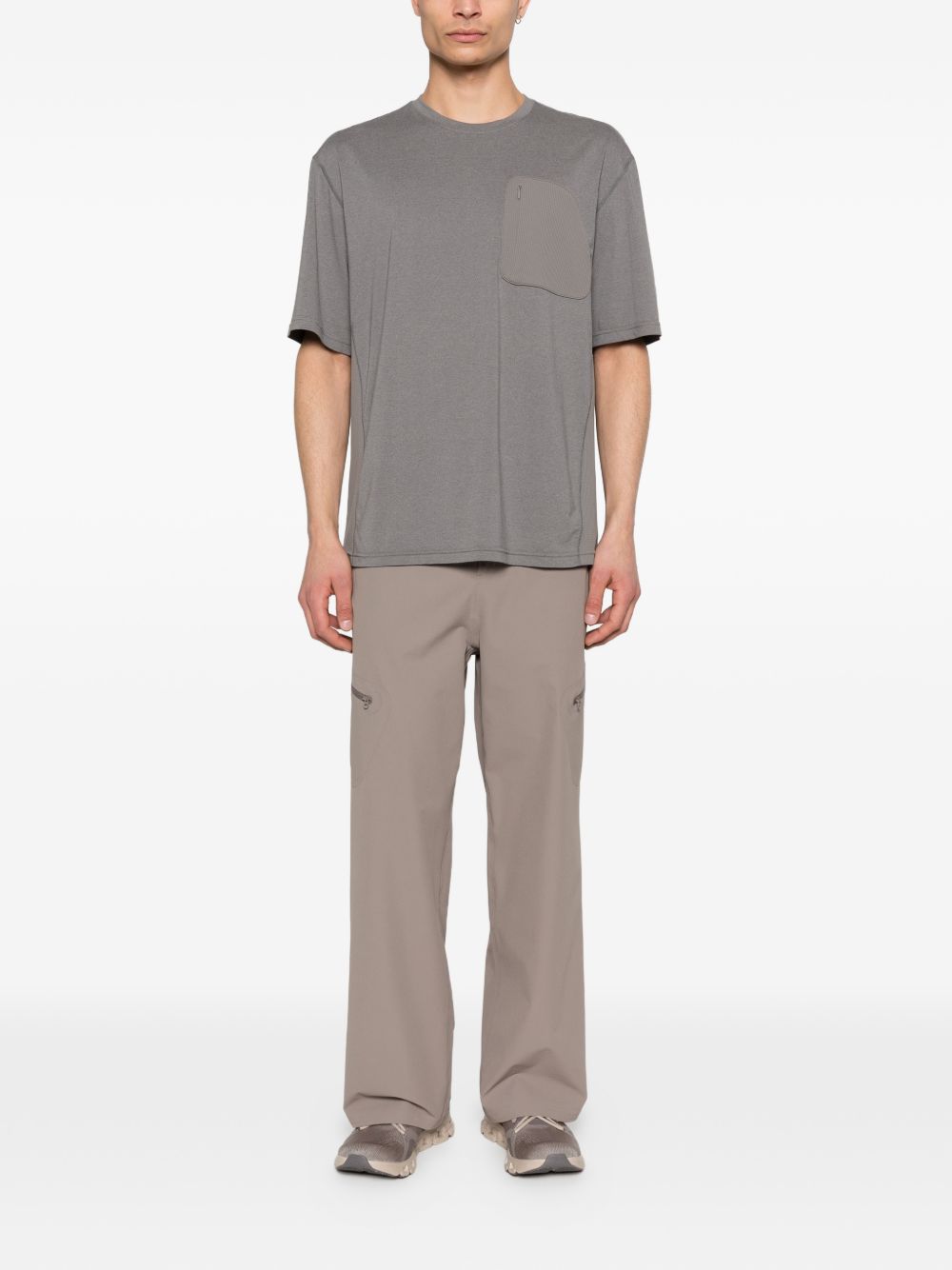 Edge LT Softshell Technical Walnut Pants by Hiking Patrol with zippered pockets, straight cut, mid-rise waist, and straight hem.