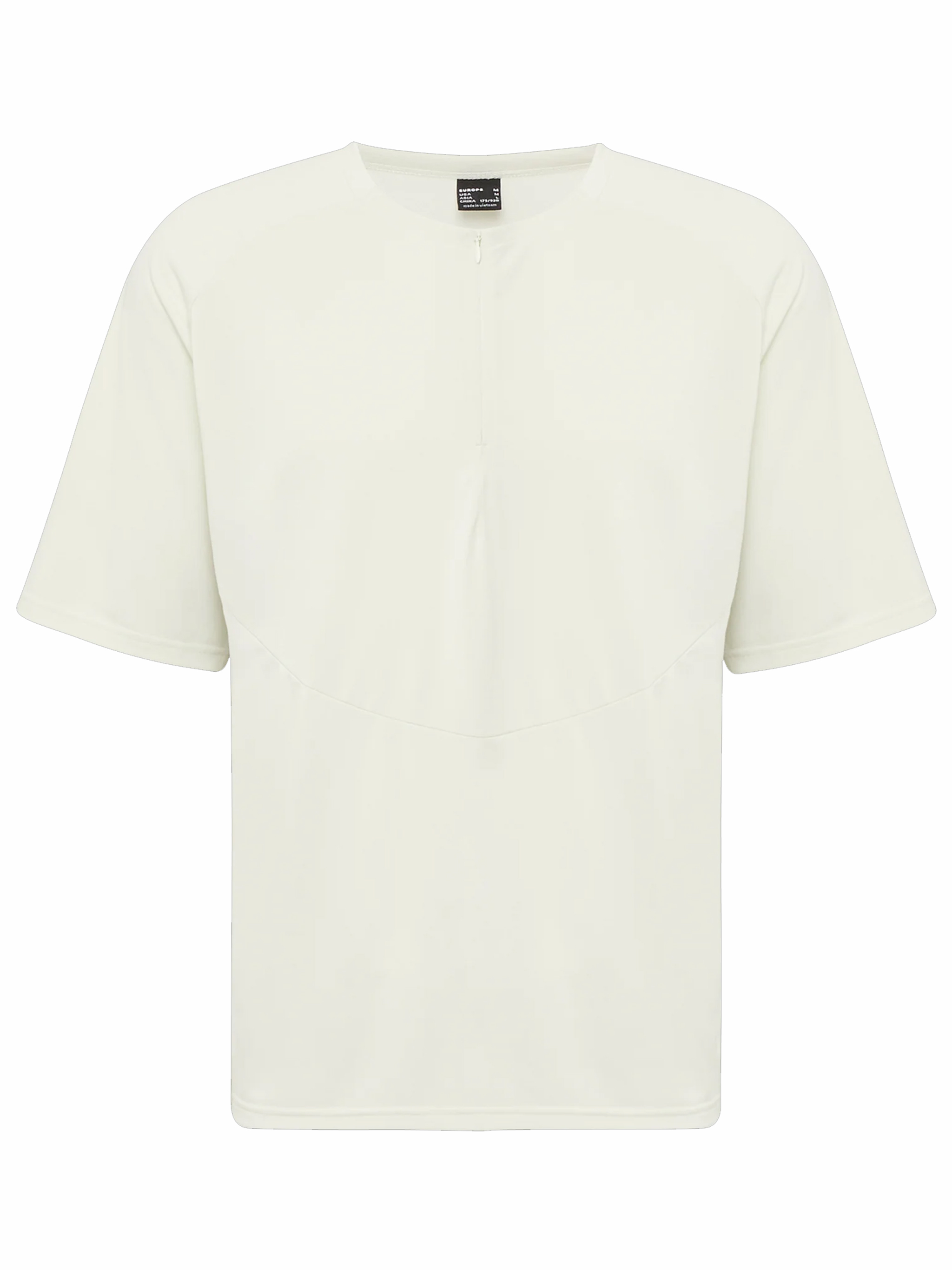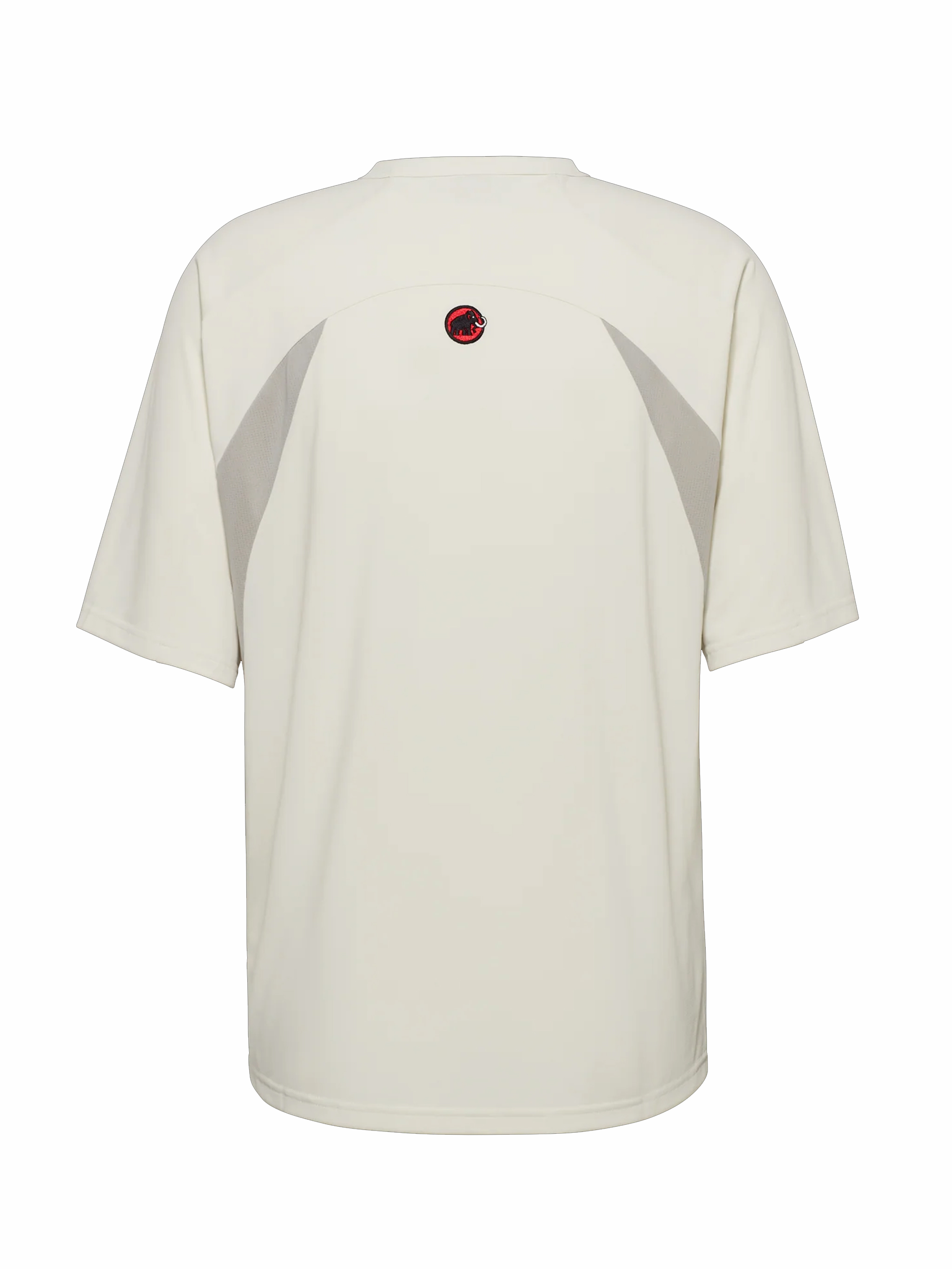 Hiking Patrol Light FL Half Zip T-shirt in sage green, made of polyester, featuring a crew neck, short sleeves, a logo on the back, and a straight hem.