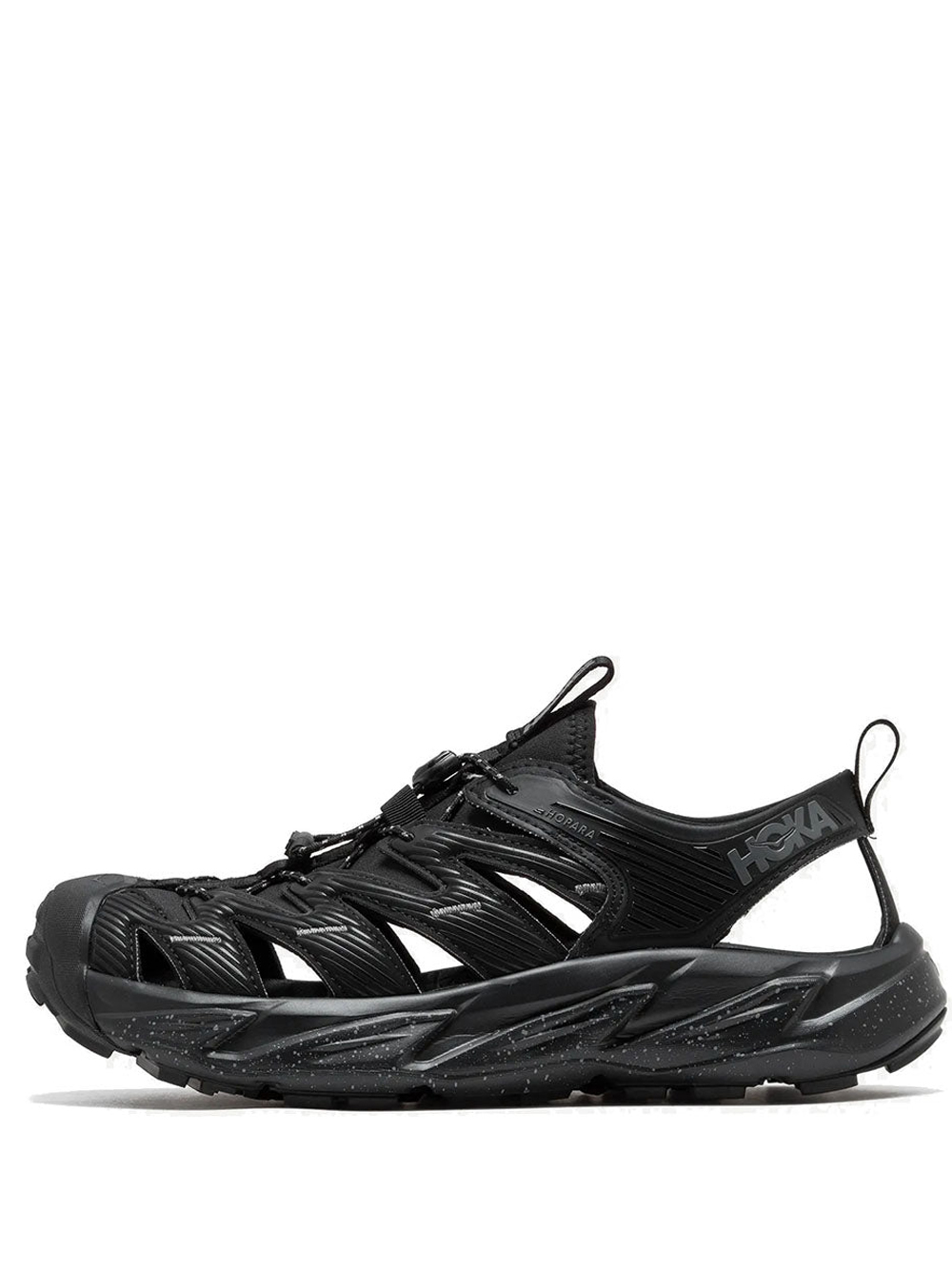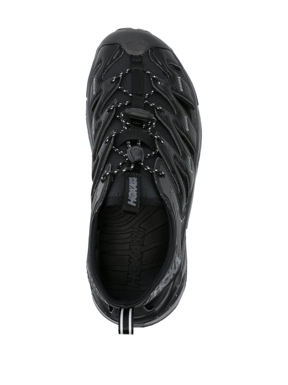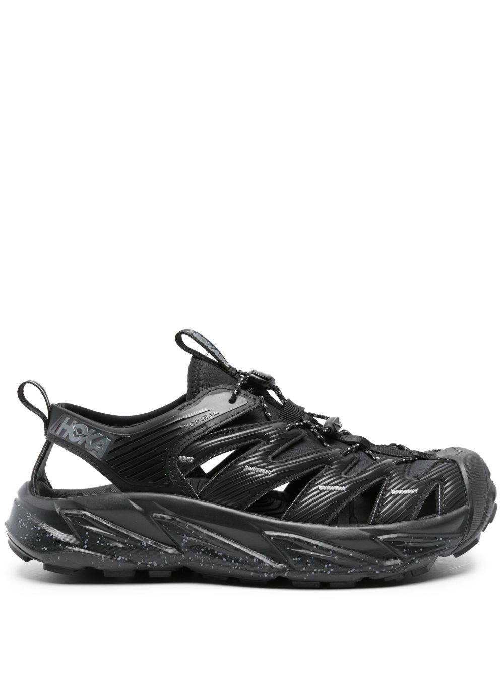 Black Hopara sneakers by Hoka One One with perforated insert design , round toe and mottled effect Vibram® sole.