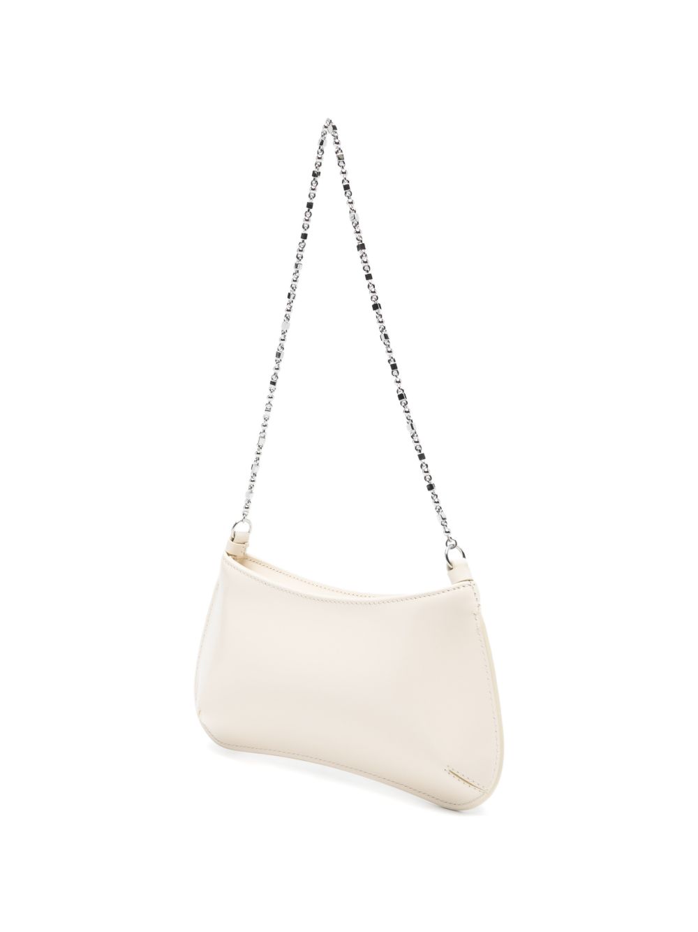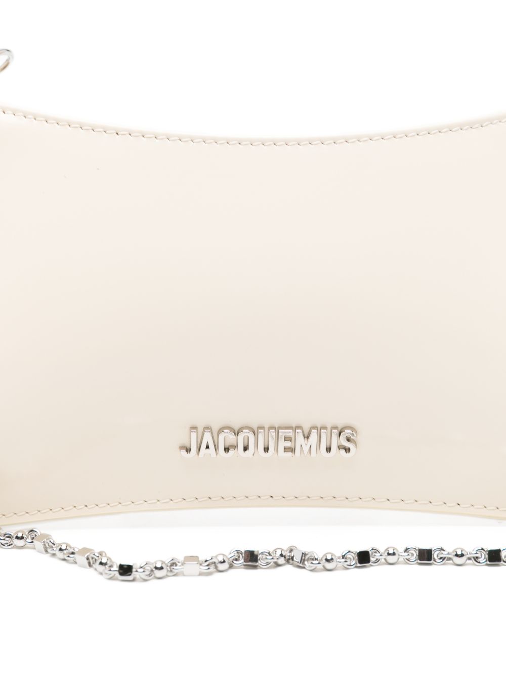 Jacquemus Le Petit Bisou Chain ivory leather bag with a wavy silhouette, zip closure, interior pocket, and shoulder strap.