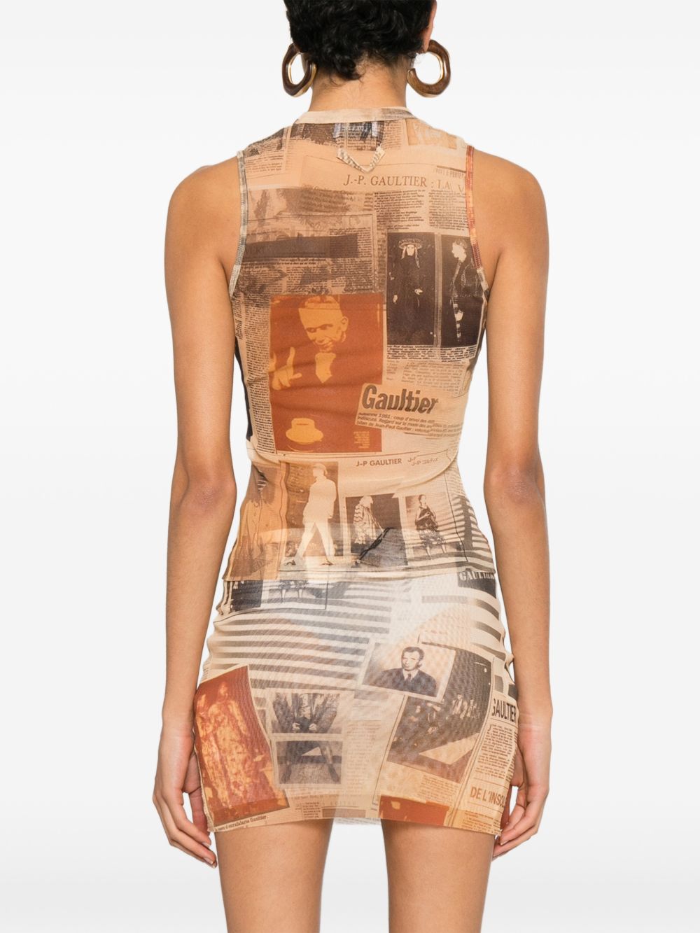 Ecru, gray, and red tank top by Jean Paul Gaultier in polyamide with a round neckline, fitted design, all-over print, and straight hem.