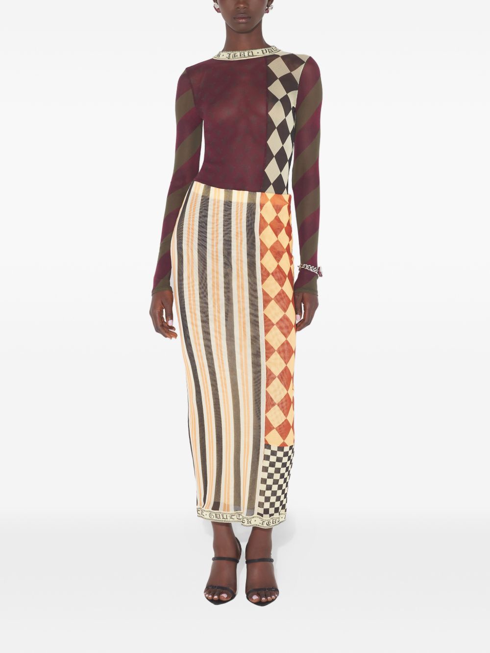Long multicolor skirt by Jean Paul Gaultier in polyamide, all-over print, and straight hem.